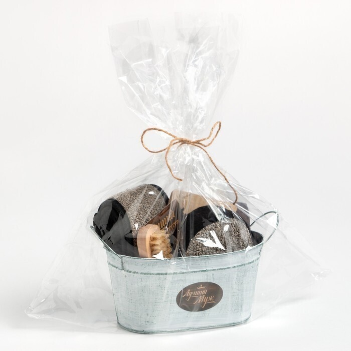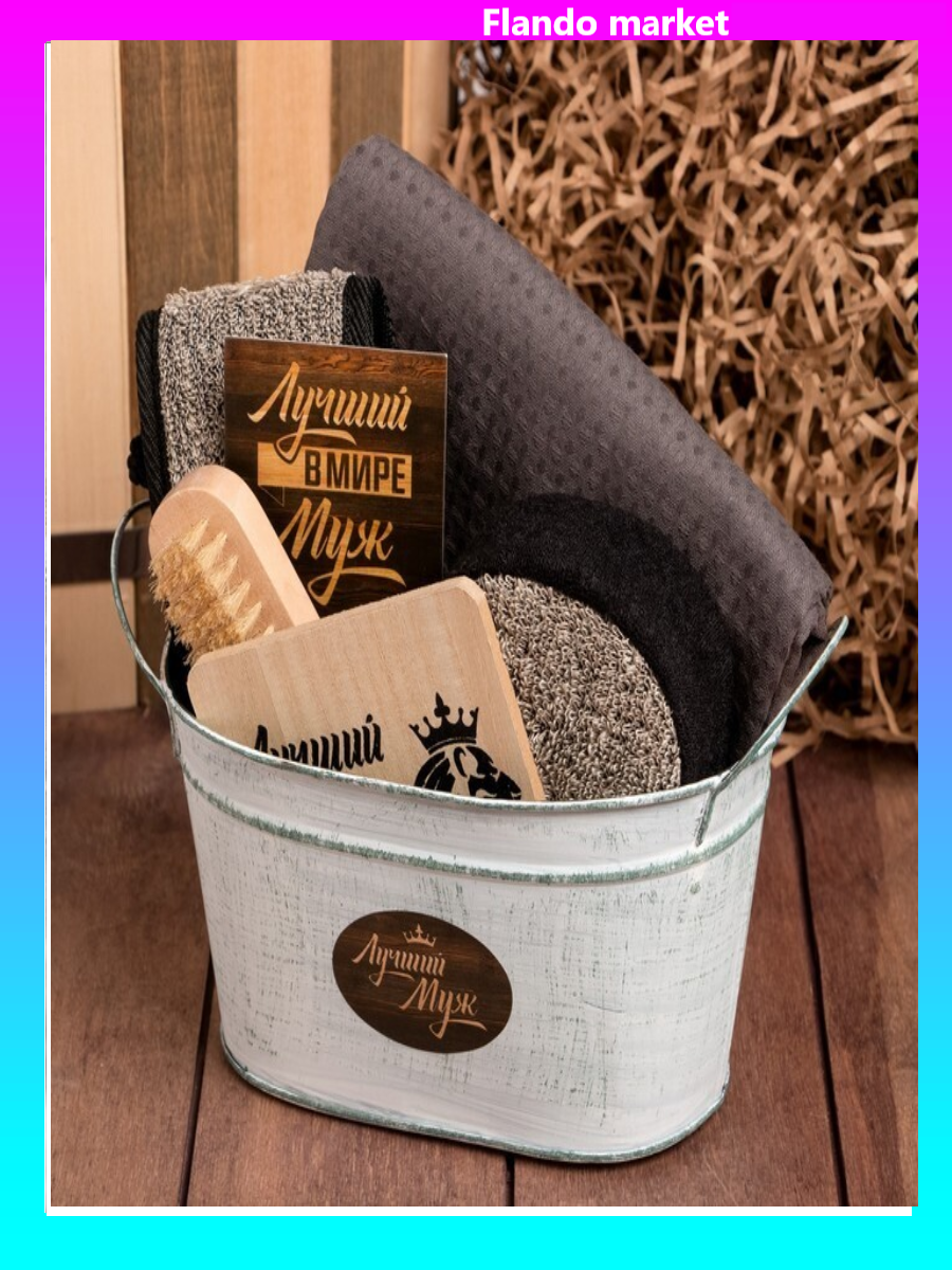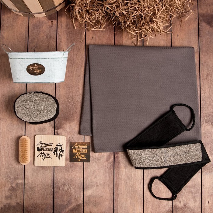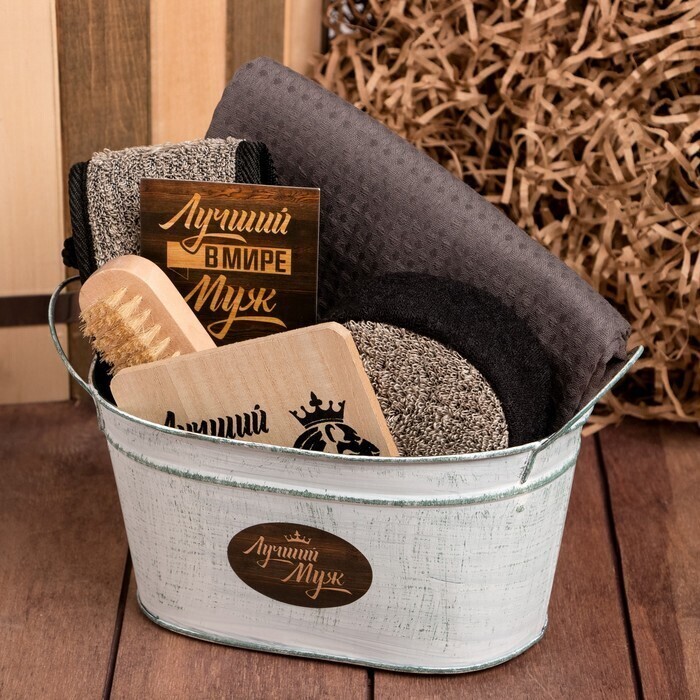 !09 Набор подарочный "Лучший муж" 7 предметов (Мочалка, Открытка, Подставка под горячее, Полотенце, Щётка)