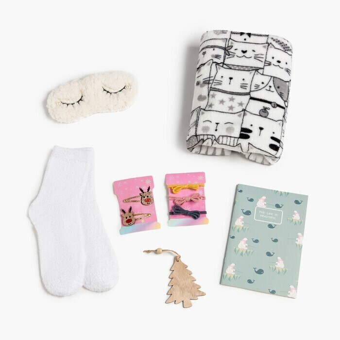 Игрушка, Резинка, Заколка, Маска для сна, Блокнот, Носки, Плед