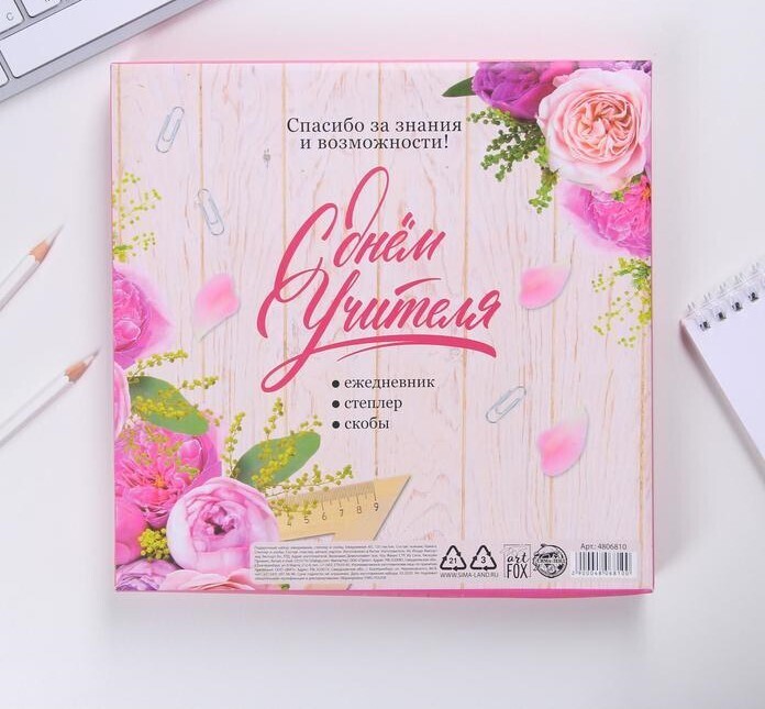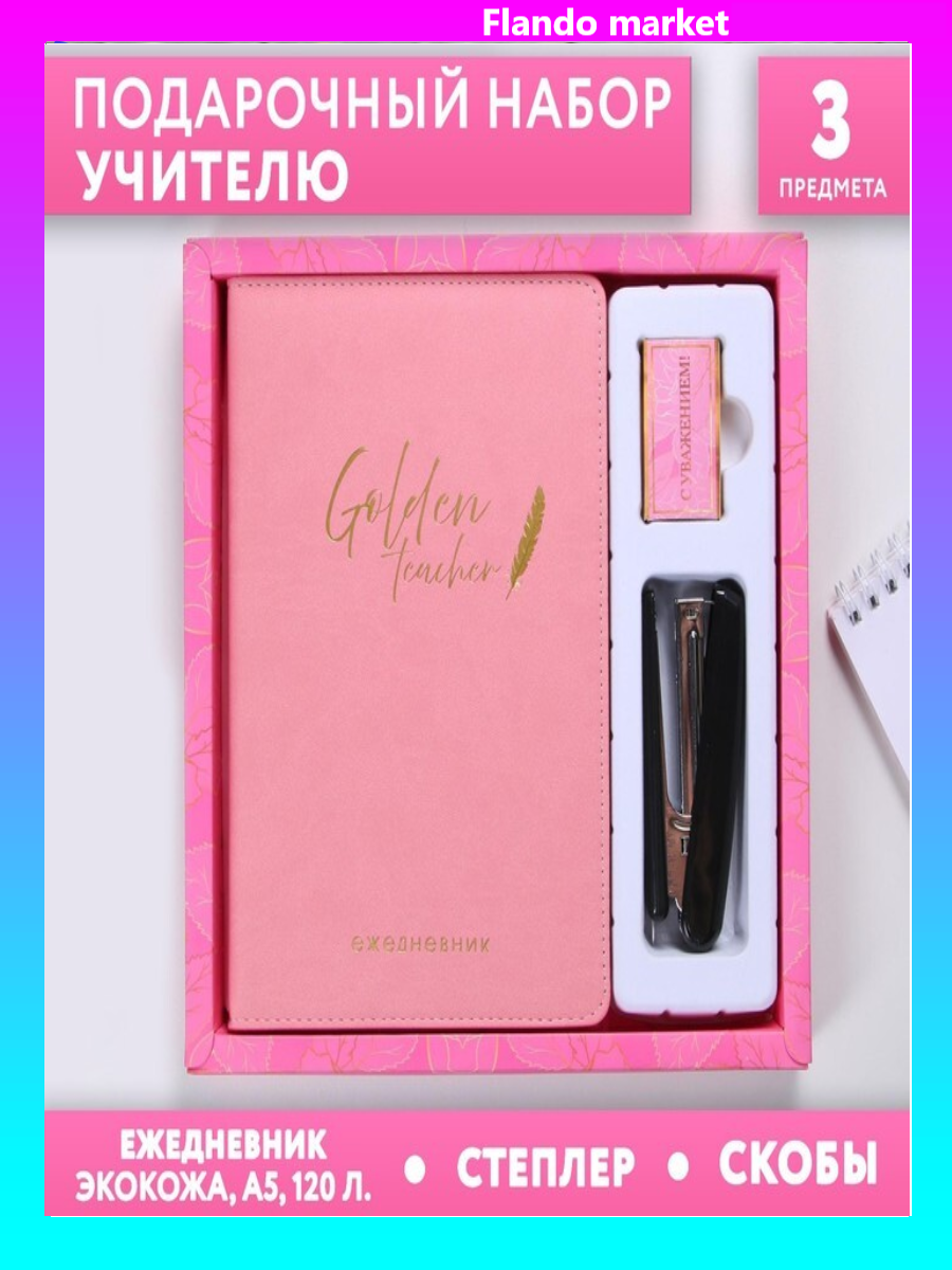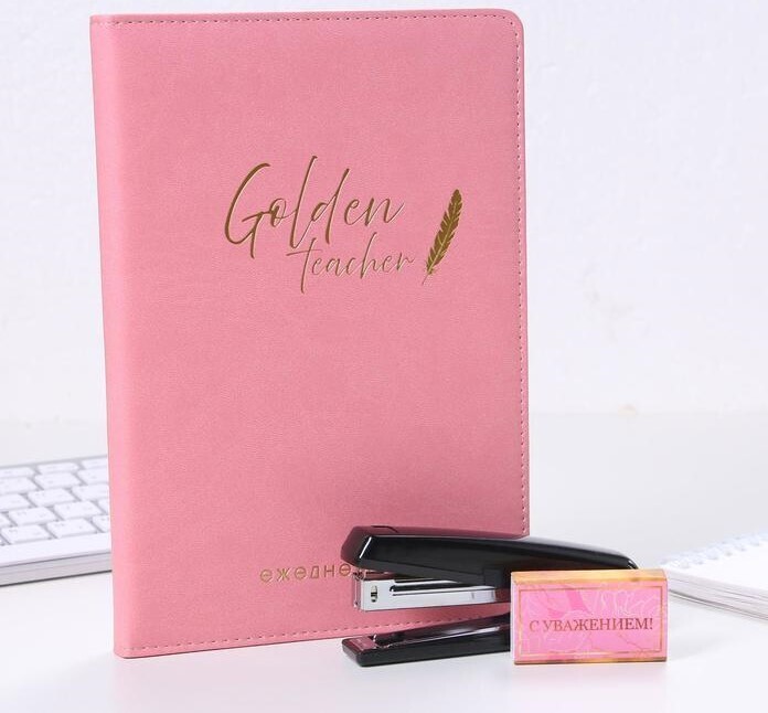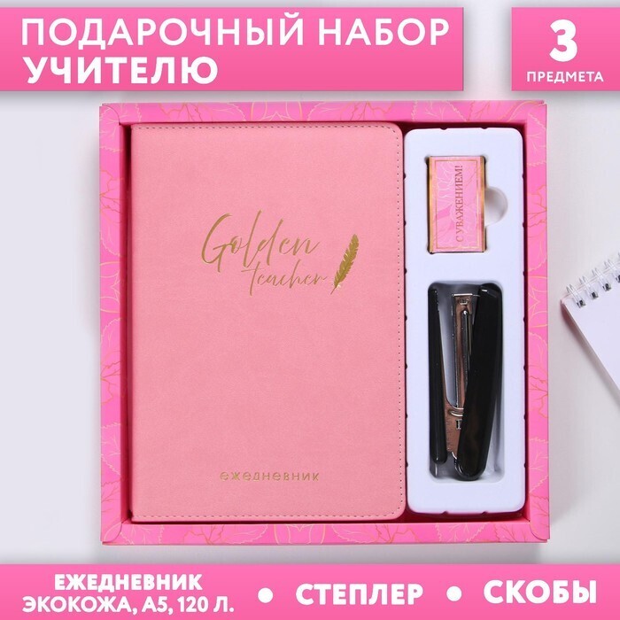 !09 Набор «С Днем учителя»: ежедневник А5 120 листов, степлер, скобы