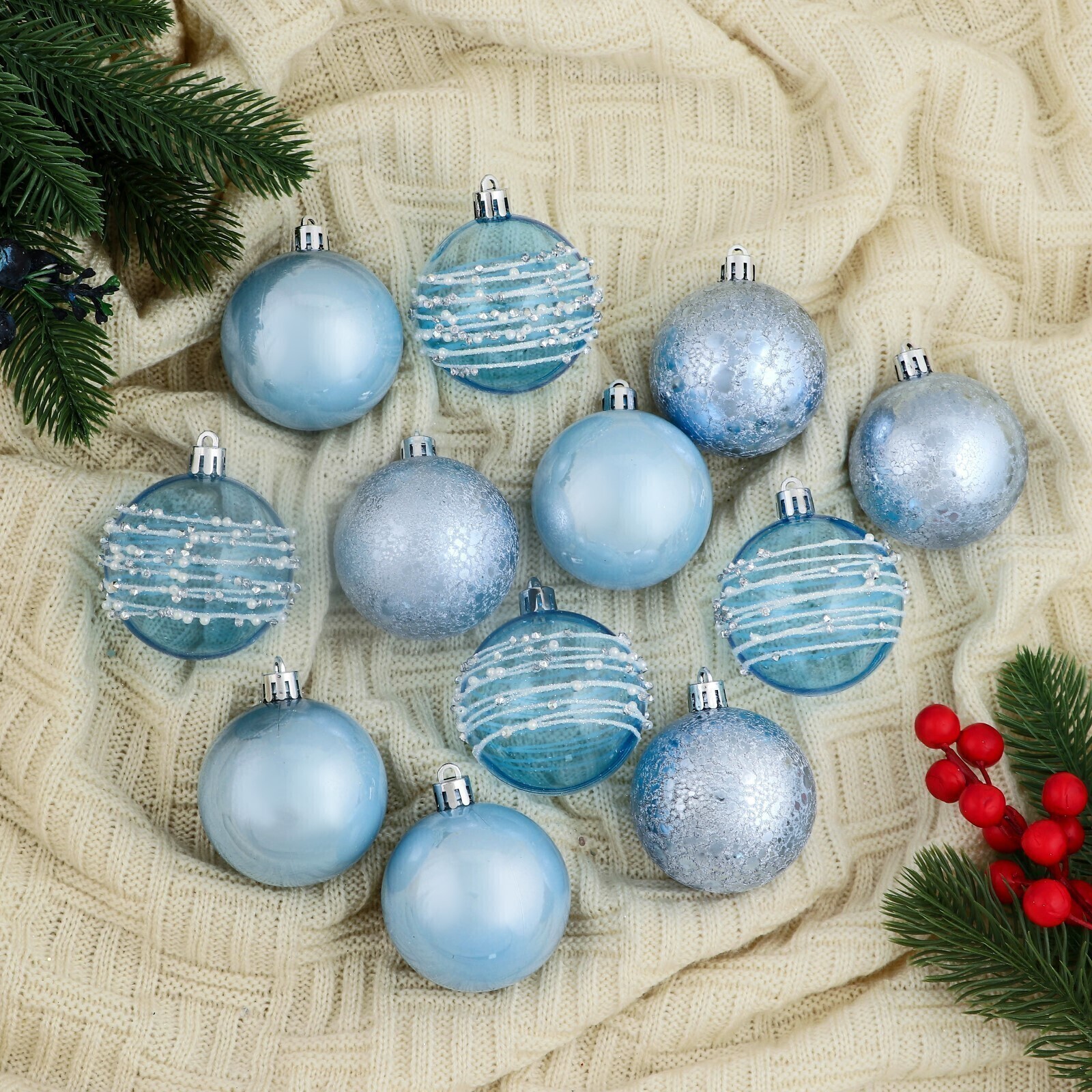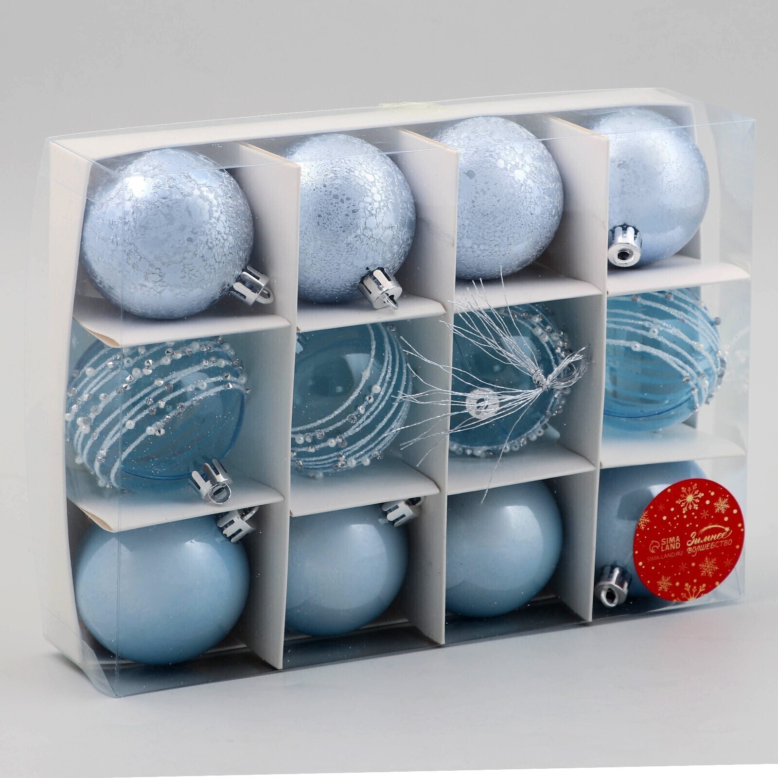 !09 Набор шаров пластик d-6 см, 12 шт "Сказочные узоры" орбита, голубой