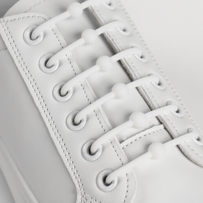 !09 Набор шнурков для обуви «Шар», 6 шт, силиконовые, круглые, d = 15 мм, 6,5 см, цвет белый
