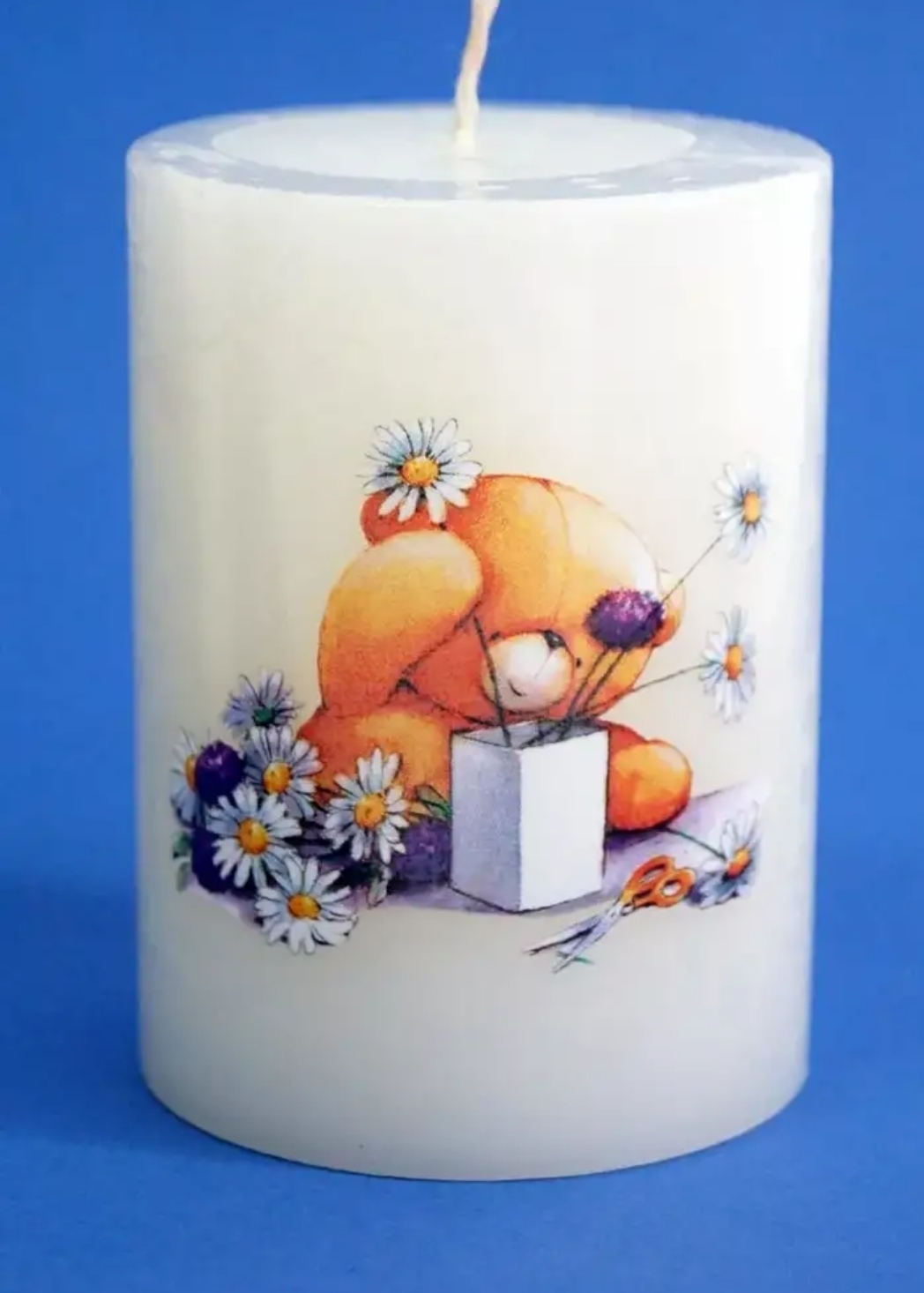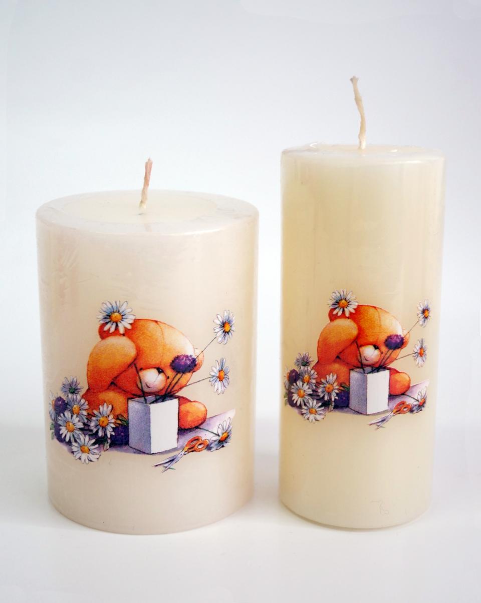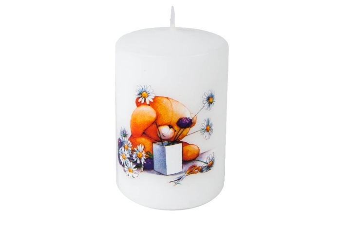 !09 НАБОР СВЕЧЕЙ 2 ШТУКИ - Свеча декоративная "Медвежонок с ромашками" 7x7x10 см цвет белый ивори