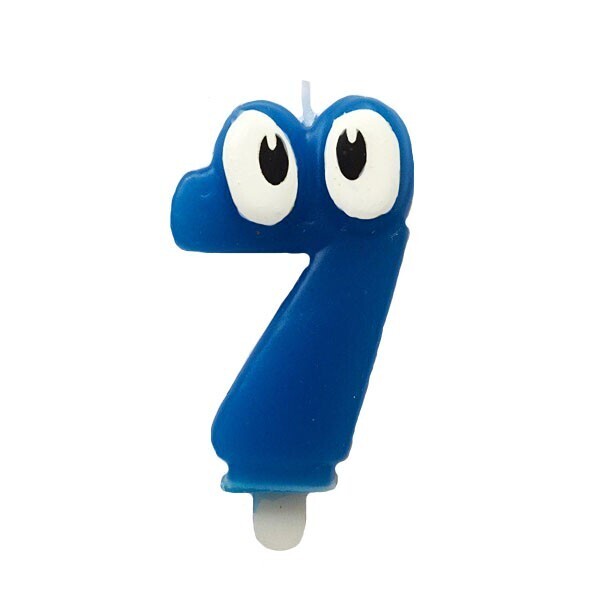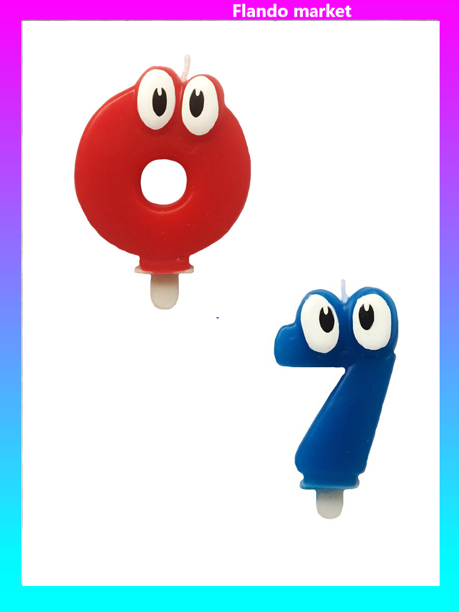 !09 Набор свечей в торт "Глазки" 2 штуки: "Цифра 0 " красная+"Цифра 7" синяя