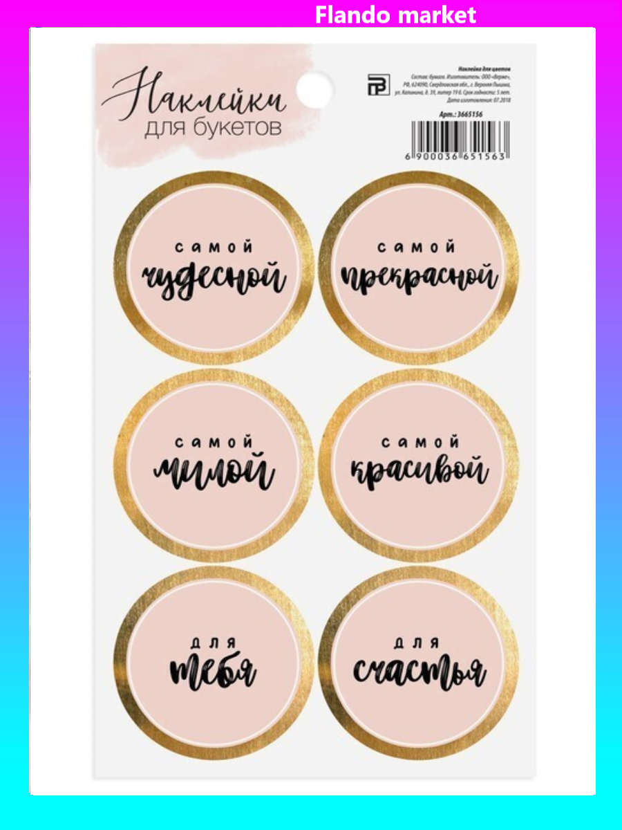 !09 Наклейка (набор 9 листов) для цветов «Самой чудесной», 16 × 9 см.