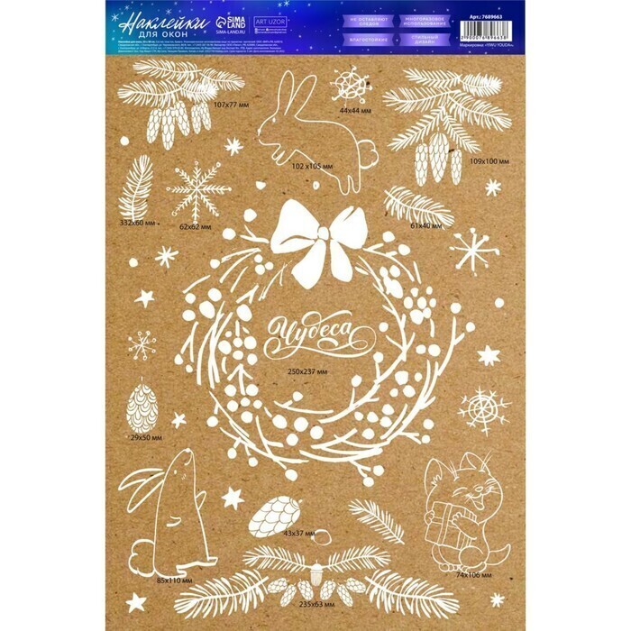 !09 Наклейка для окон «Чудеса», многоразовая, 33 × 50 см