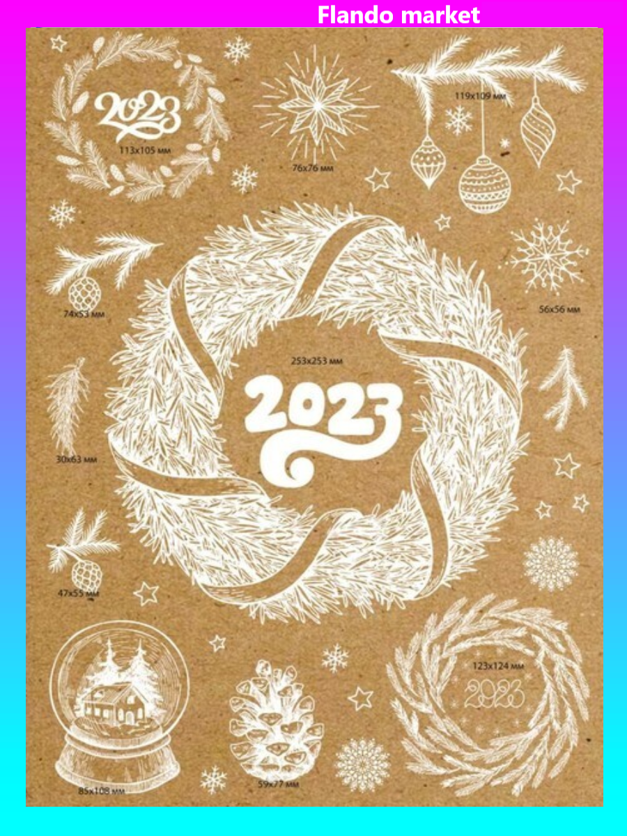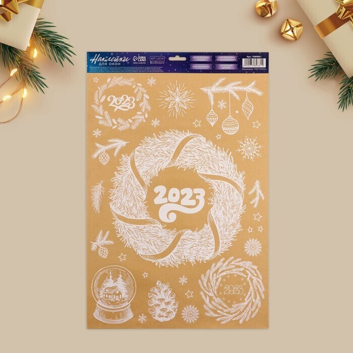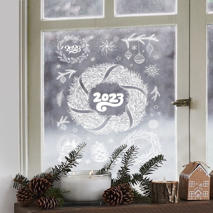 !09 Набор из 4-х наклеек: Наклейка для окон «Новогоднее чудо», многоразовая, 33 x 50 см