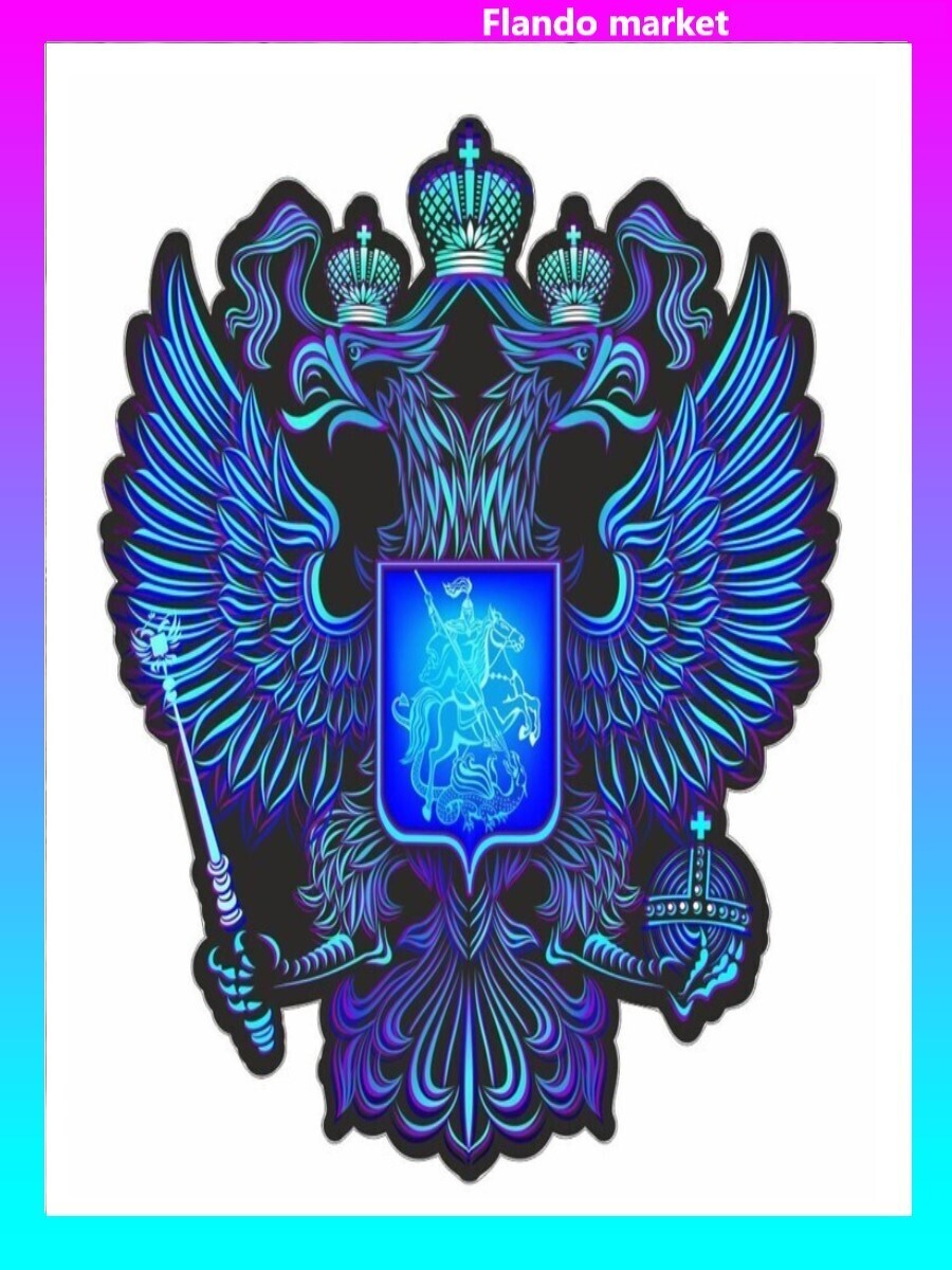 !09 Наклейка на авто "Герб России", вид №5, синий, 100*100 мм, 1 шт.