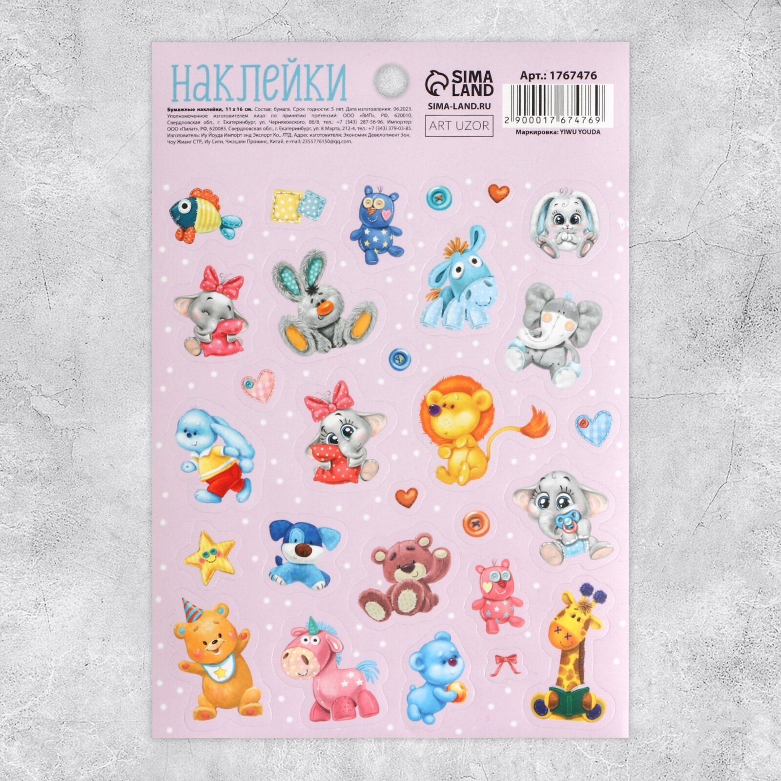 !09 Наклейки (набор 2 штуки) детские бумажные «Любимые игрушки», 11 х 16 см