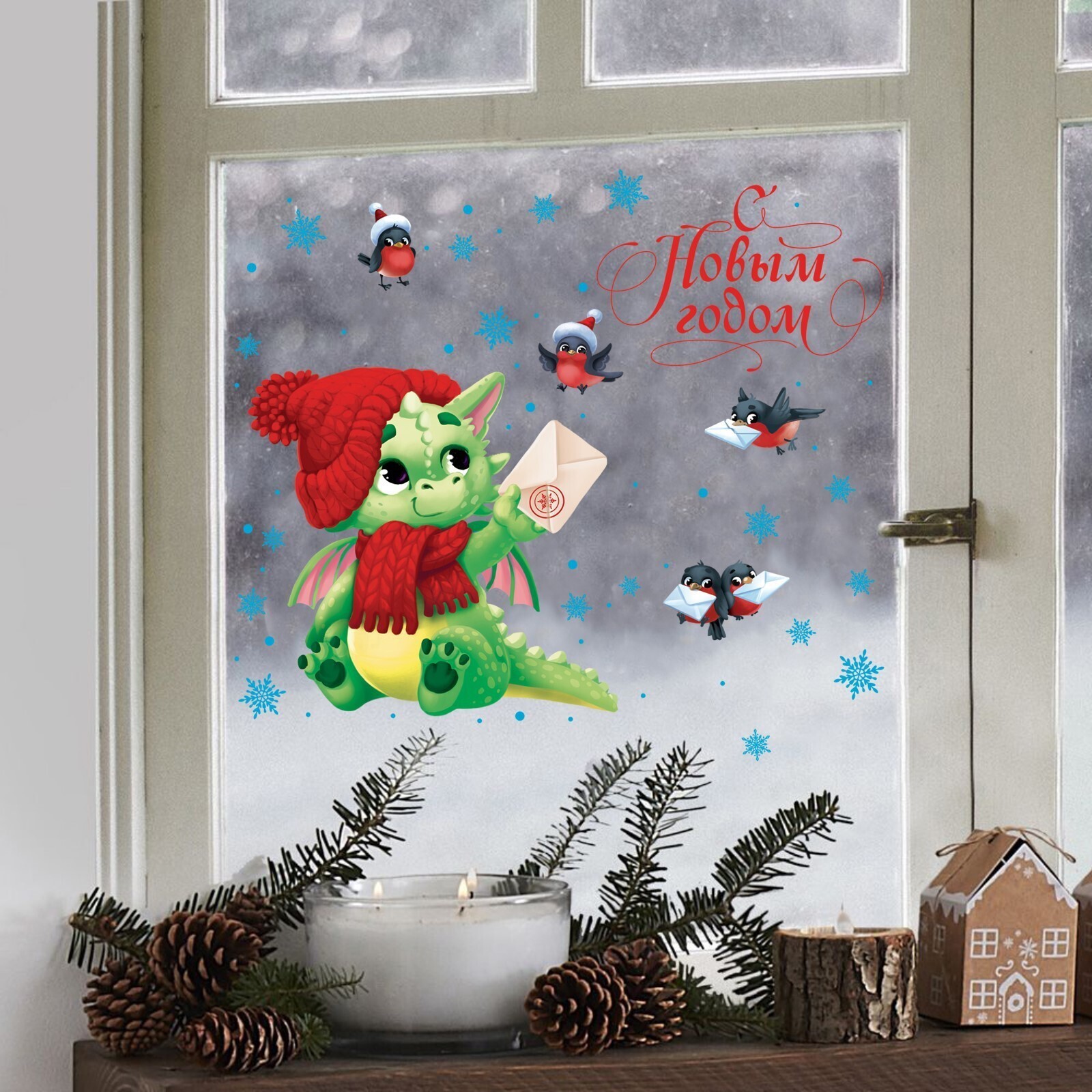 !09 Наклейки новогодние на окна, виниловые «Новогодняя почта», многоразовые, 20 х 34,5 см, Новый год