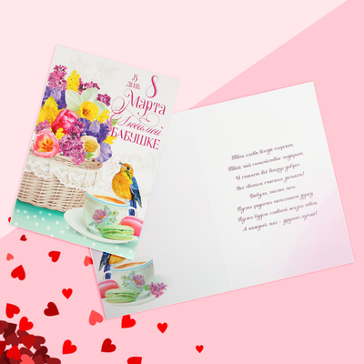 !09 Открытка (набор 7 штук) «В день 8 марта любимой бабушке», корзинка, 12 х 18 см