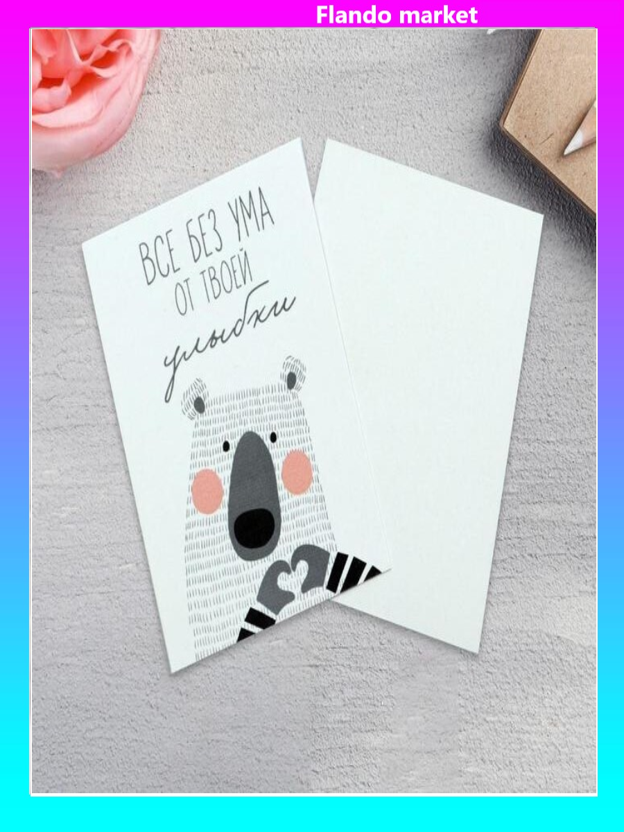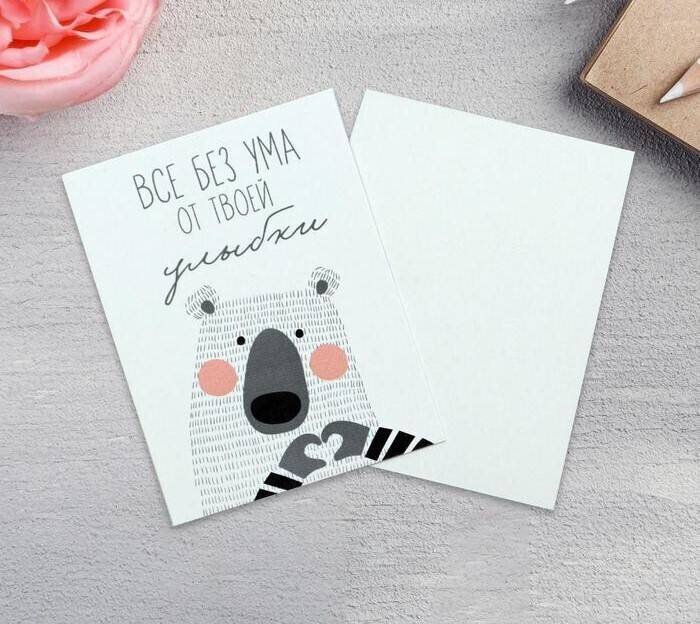 !09 Открытка-мини (набор 7 штук) «Без ума от твоей улыбки», сердечко, 8 х 6 см.
