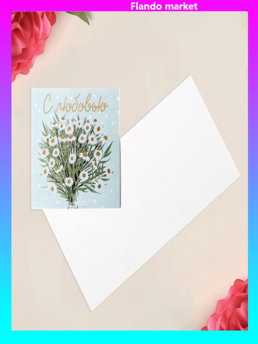 !09 Открытка-мини раскладывающая (набор 8 штук) «С любовью» букет, 7 × 7 см.