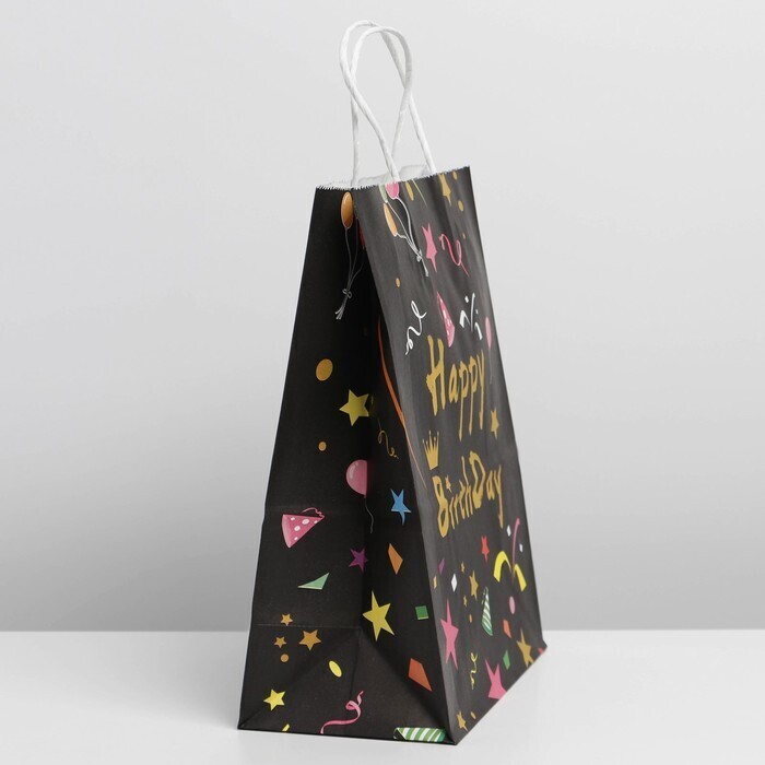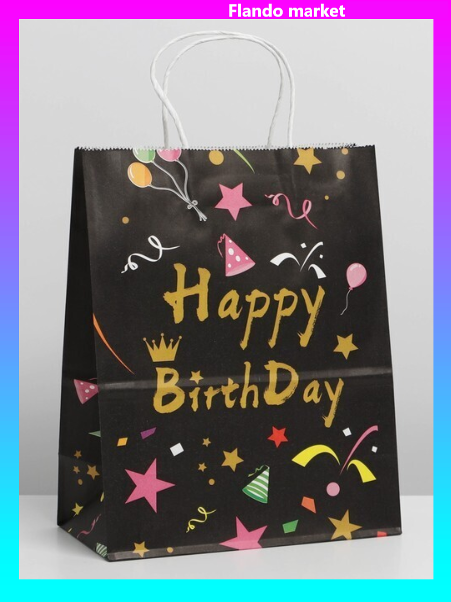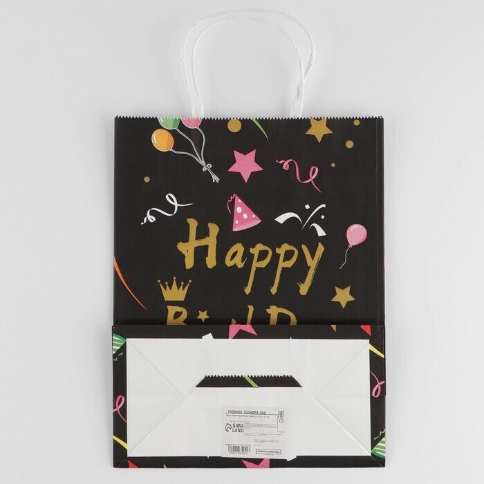 !09 Пакет (набор 4 штуки) HAPPY BIRTHDAY black, 27 х 21 х 11 см.