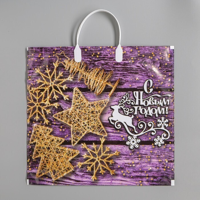 !09 Пакет (набор 5 штук) "Золотая россыпь", полиэтиленовый с пластиковой ручкой, 37 х 34см, 80 мкм.