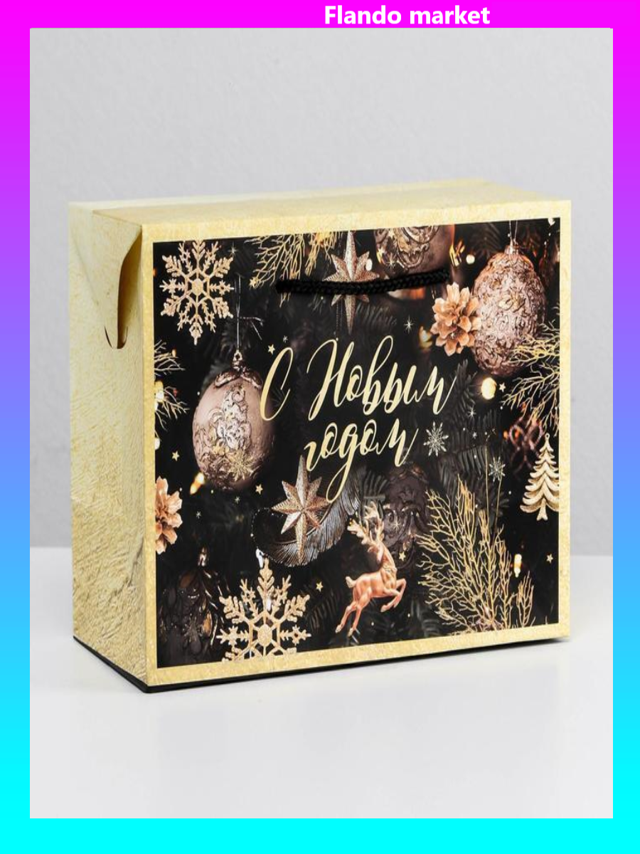 !09 Пакет-коробка «Новогодняя ночь», 28 × 20 × 13 см.