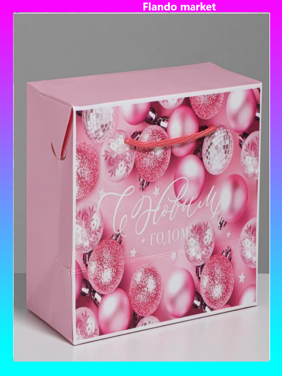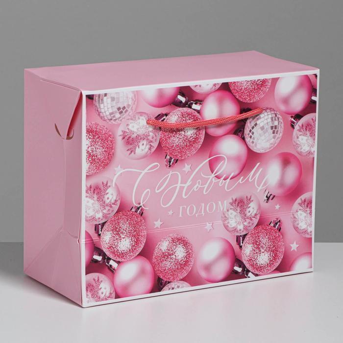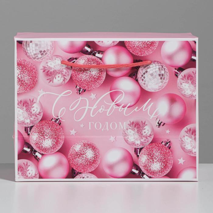 !09 Пакет-коробка (набор 2 штуки) «Розовые шары», 23 × 18 × 11 см.