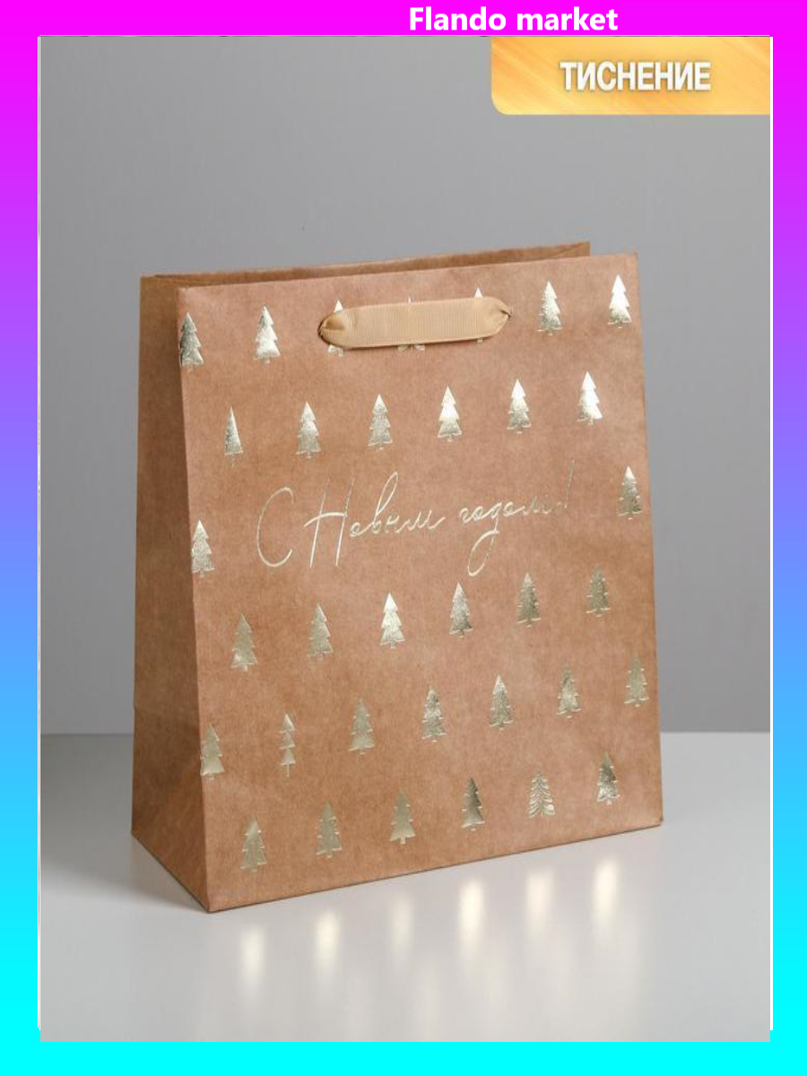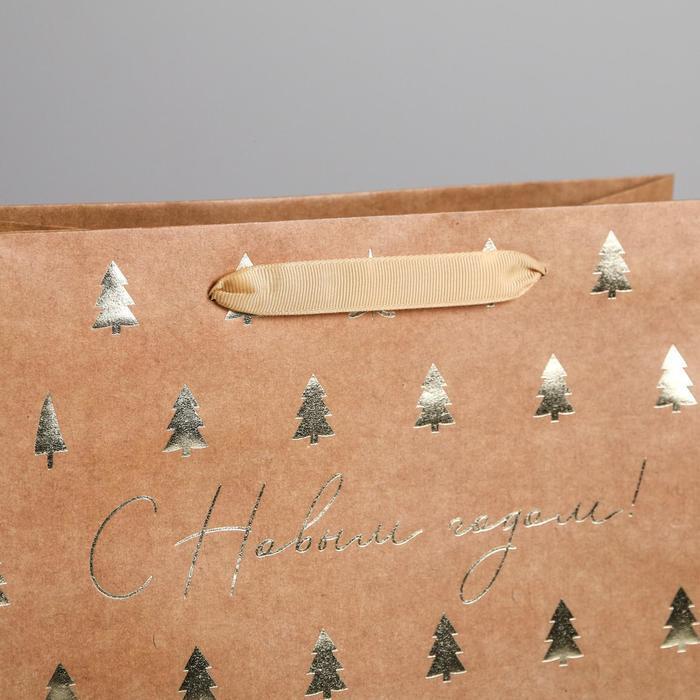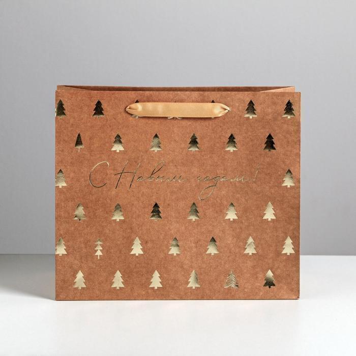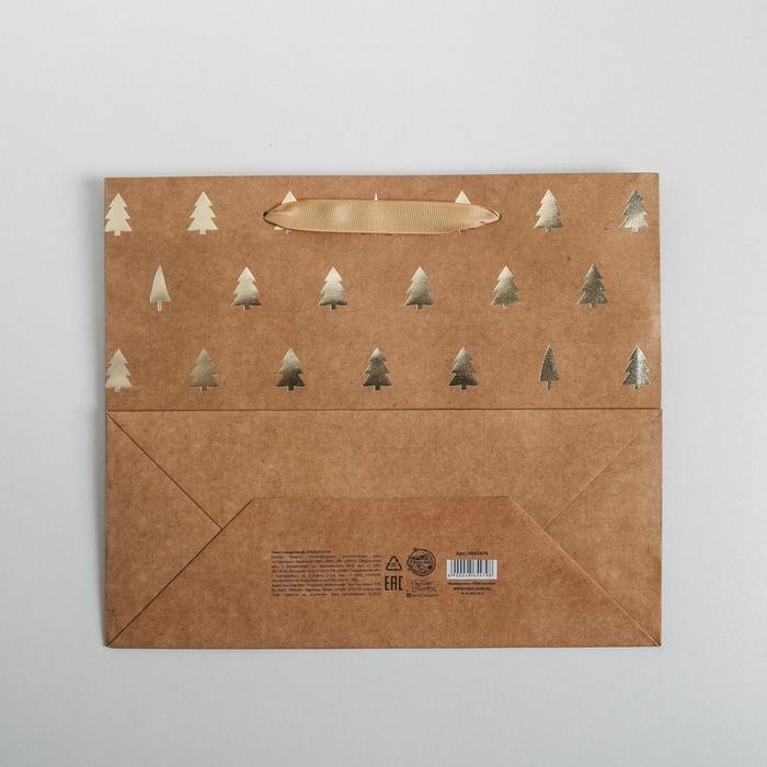 !09 Пакет крафтовый(набор 3 штуки) горизонтальный «Ёлочки», ML 27 x 23 x 11.5 см.