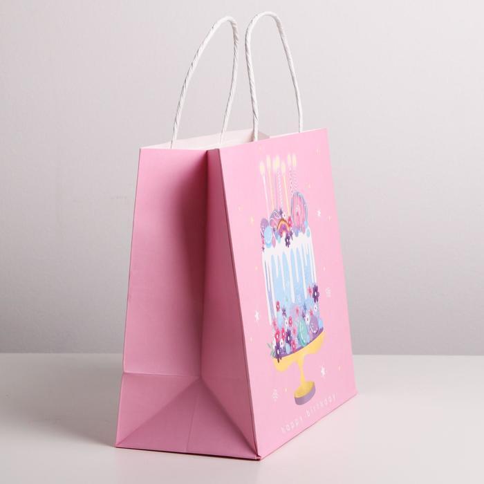 !09 Пакет крафтовый (набор 2 штуки) Happy Birthday, 22 × 22 × 11 см.