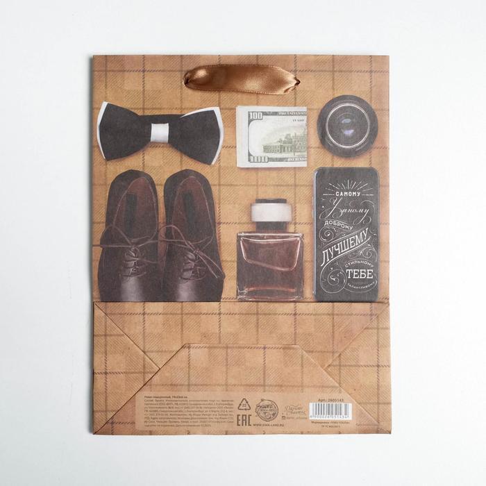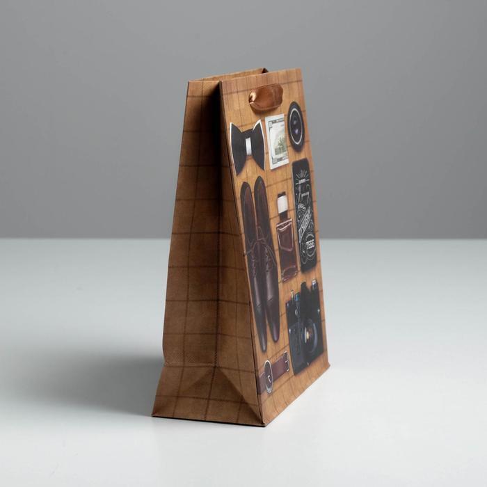 !09 Пакет крафтовый (набор 2 штуки) вертикальный «Поздравляю», MS 18 × 23 × 8 см.