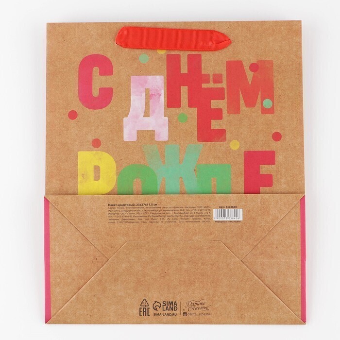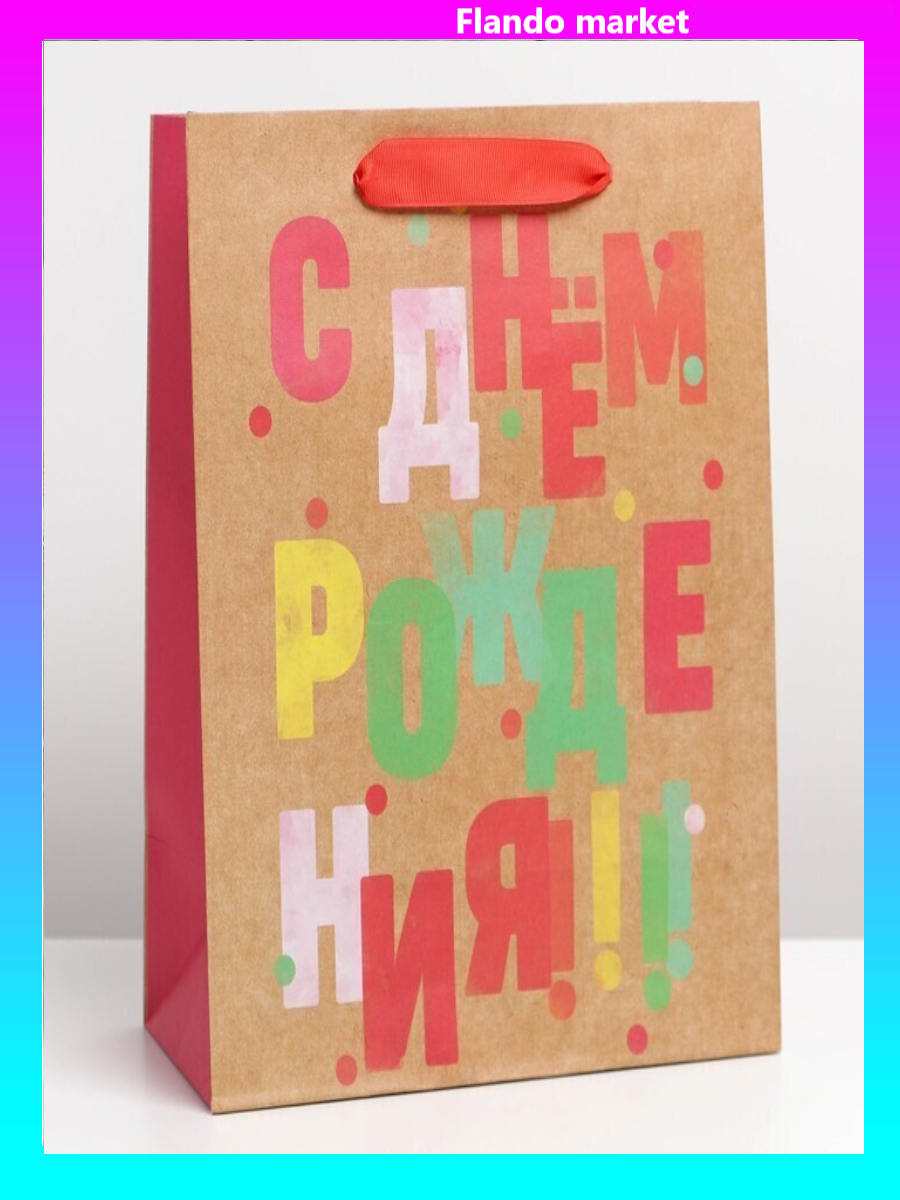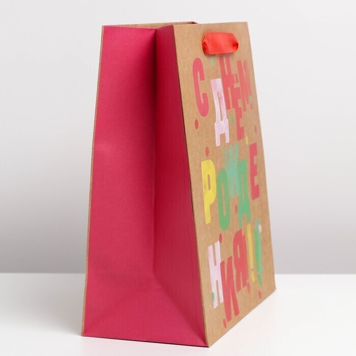 !09 Пакет крафтовый (набор 2 штуки) вертикальный «С ДР», ML 23 × 27 × 11.5 см.