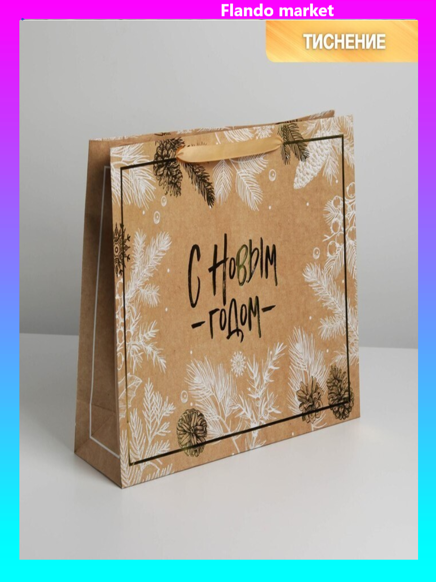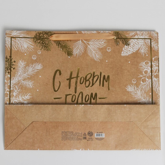 !09 Пакет крафтовый (набор 2 штуки) горизонтальный «С Новым годом», L 40 x 31 x 11.5 см.