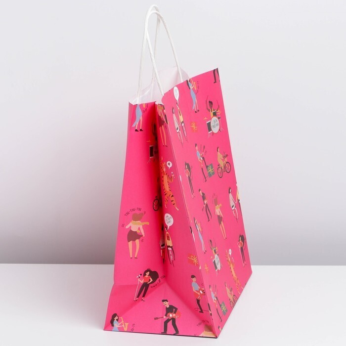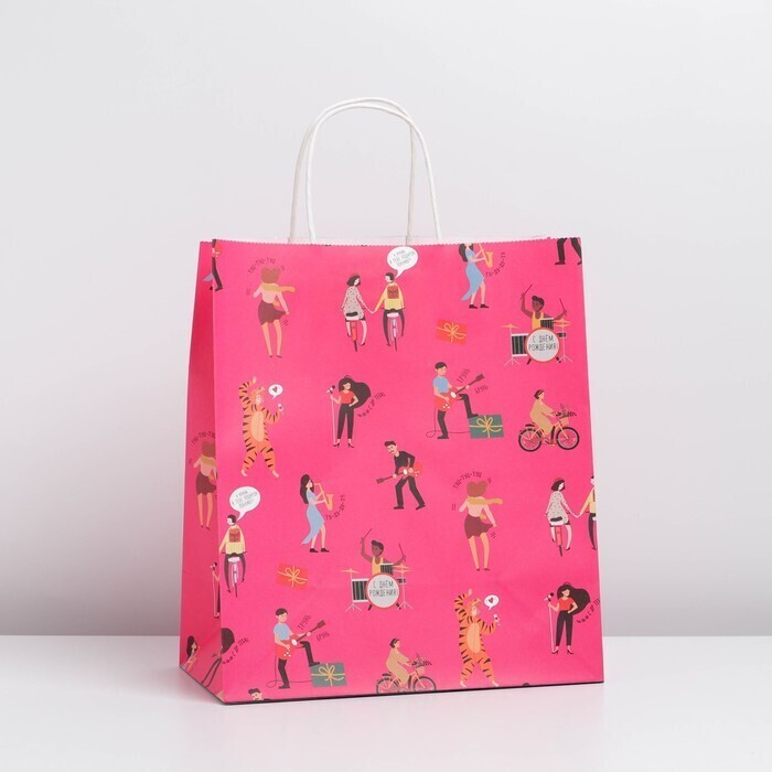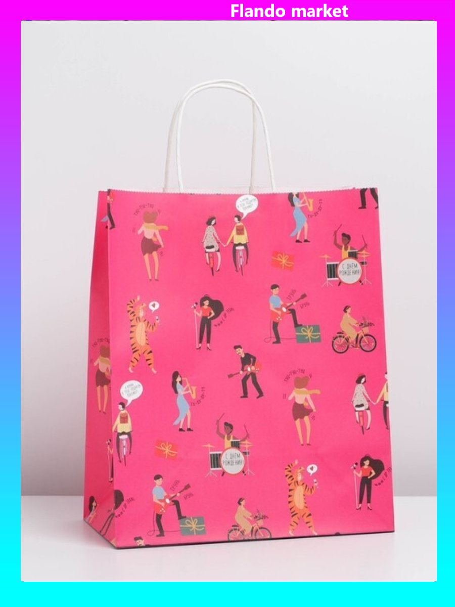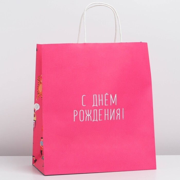 !09 Пакет (набор 2 штуки) крафтовый «С днём рождения», 28 × 32 × 15 см.