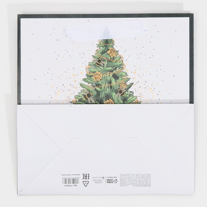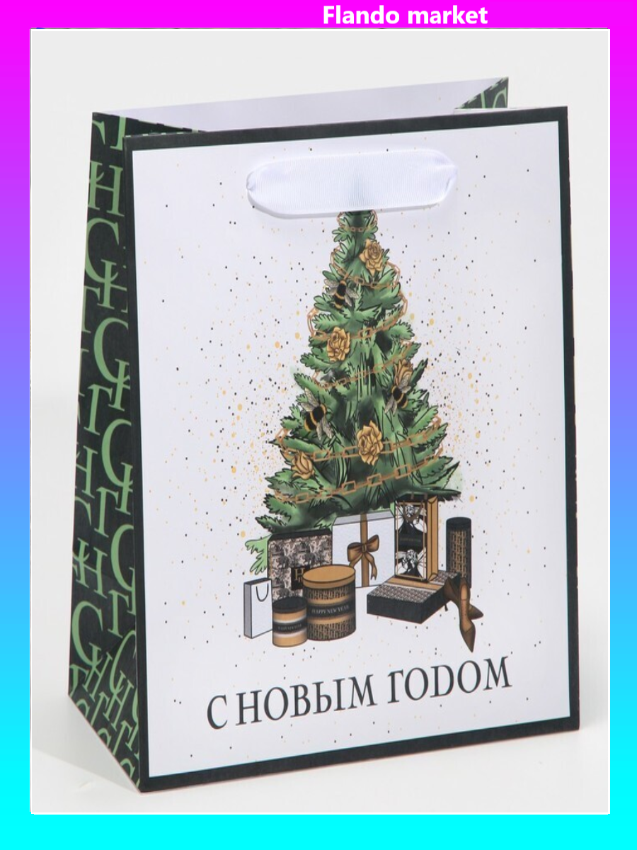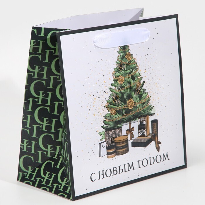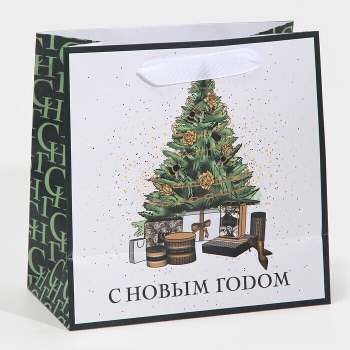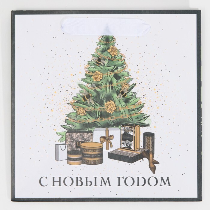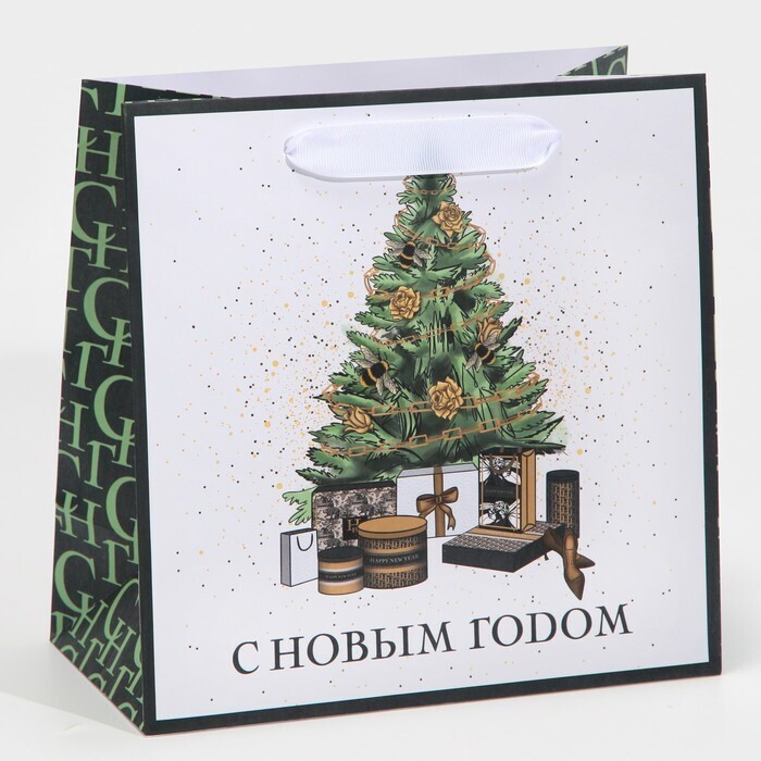 !09 Пакет ламинированный (набор 2 штуки) квадратный «Подарочки под елкой», 22 × 22 × 11 см.