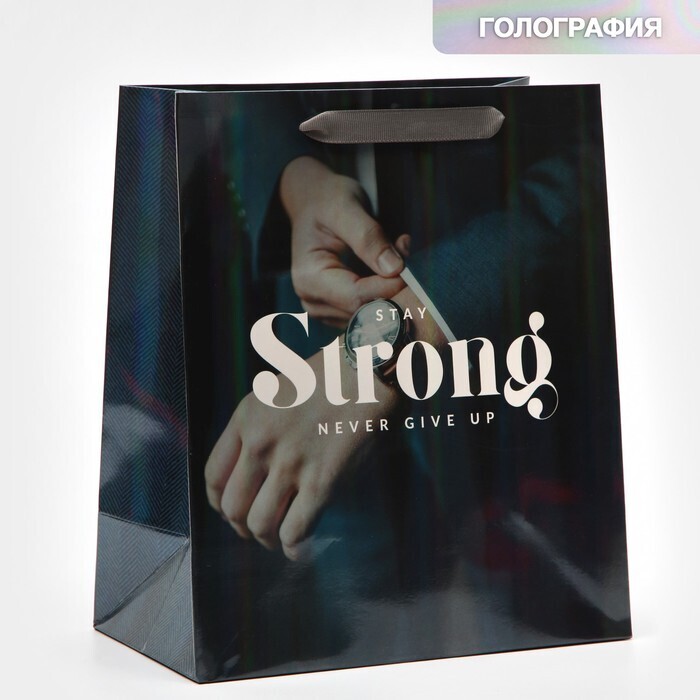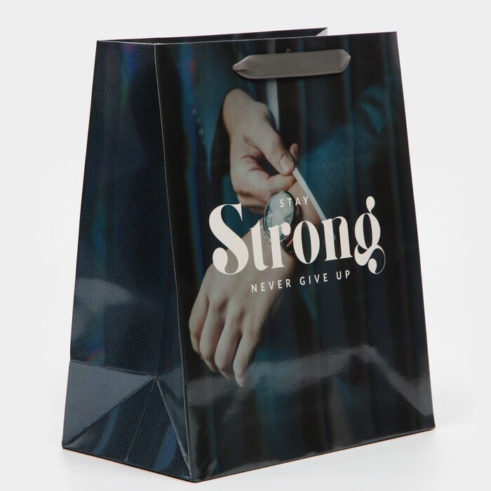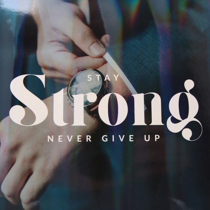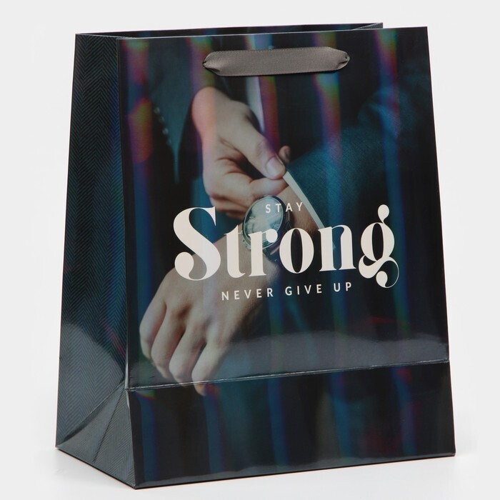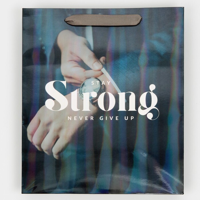 !09 Пакет ламинированный (набор 4 штуки) «Никогда не сдавайся» радужная голография, ML 23 х 27 х 11,5 см