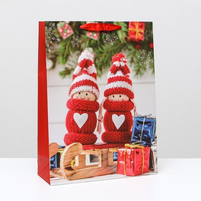 !09 Пакет ламинированный (набор 2 штуки) "Сани с подарком", 31 x 42 x 12 см.