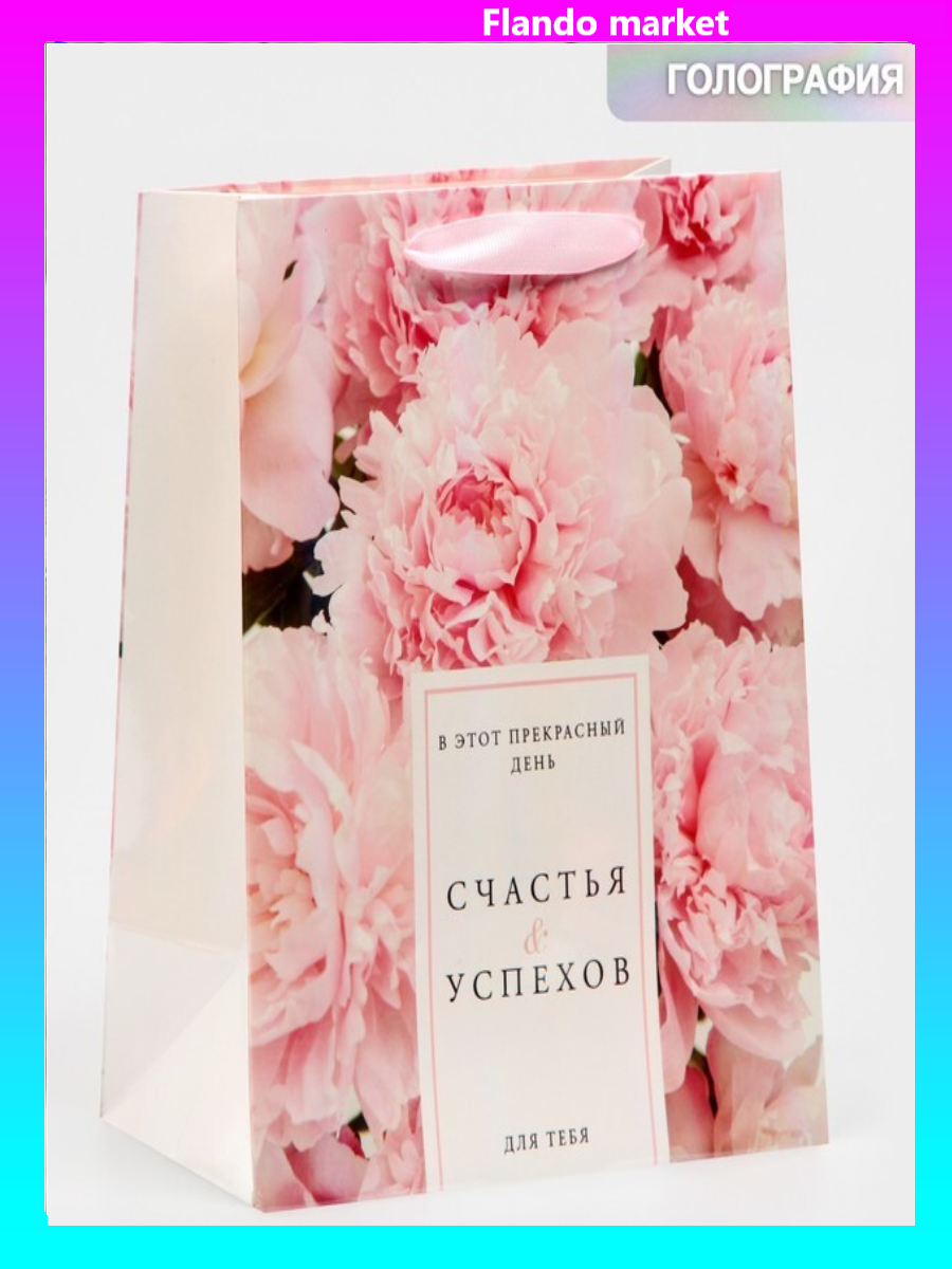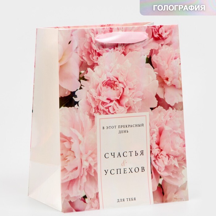!09 Пакет ламинированный (набор 3 штуки) «Счастья и успехов» радужная голография, MS 18 х 23 х 10 см