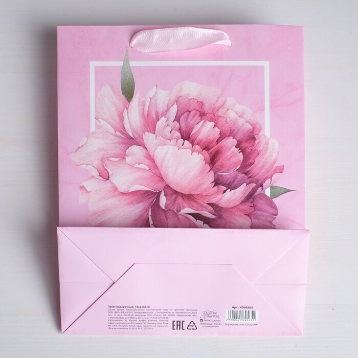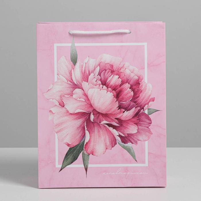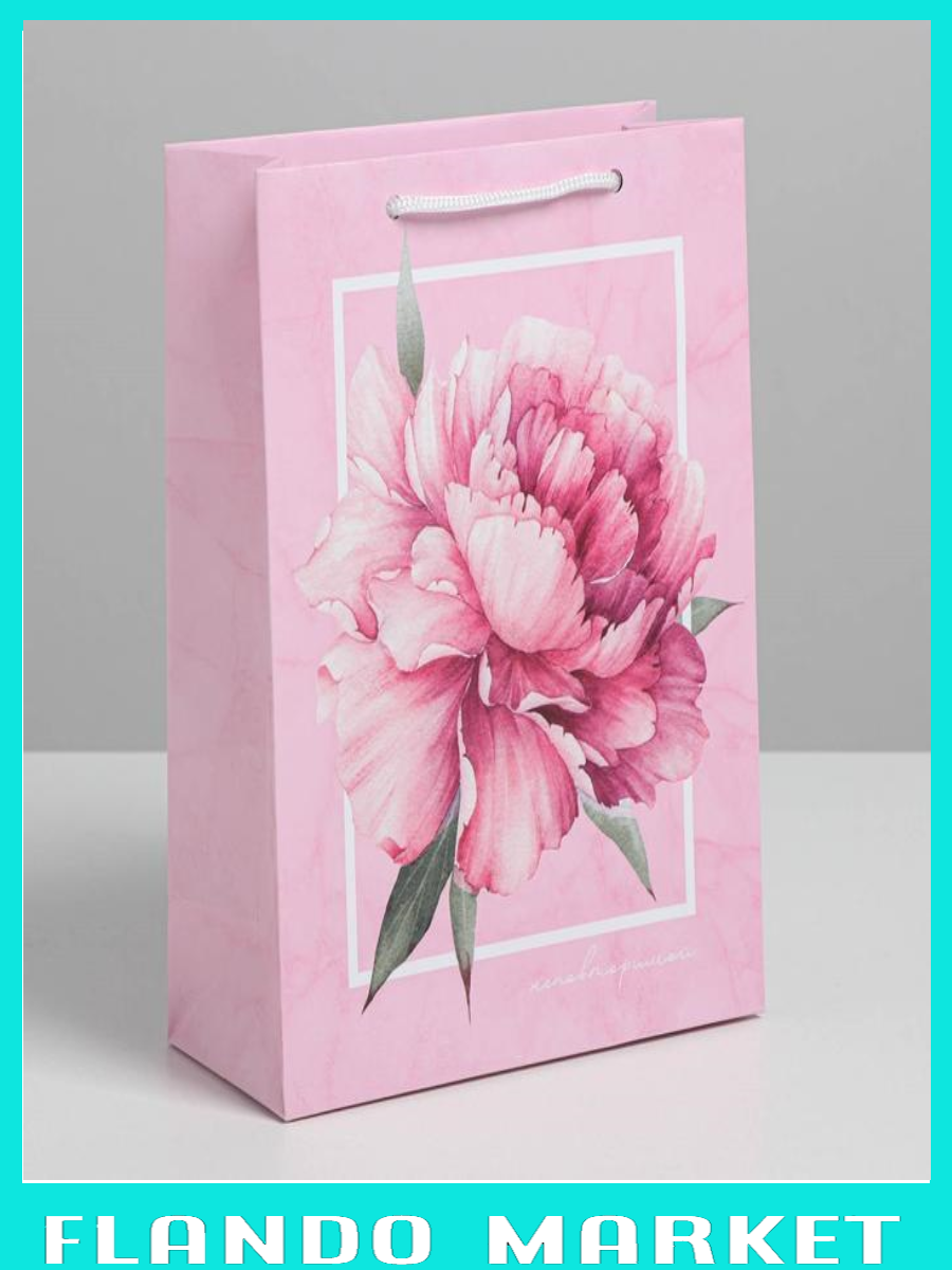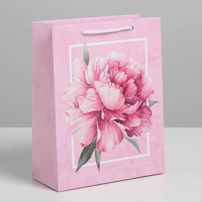 !09 Пакет (набор 3 штуки) ламинированный вертикальный «Пион» MS 18 × 23 × 8 см.