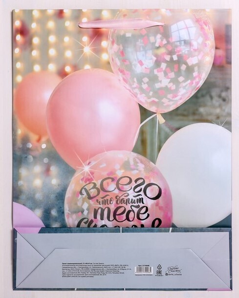 !09 Пакет (набор 3 штуки) ламинированный вертикальный «Счастья тебе!», L 30 × 41 × 11 см