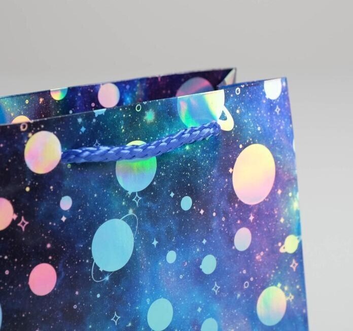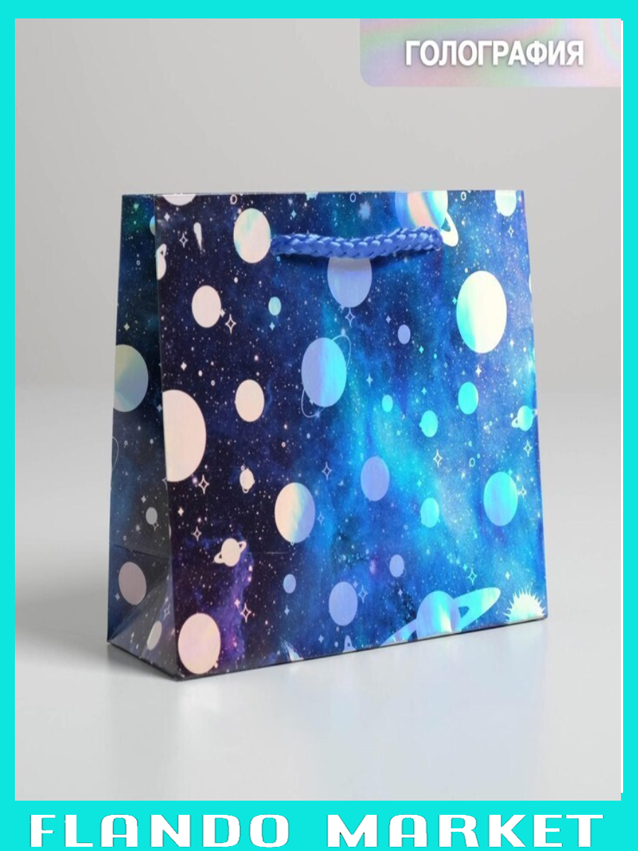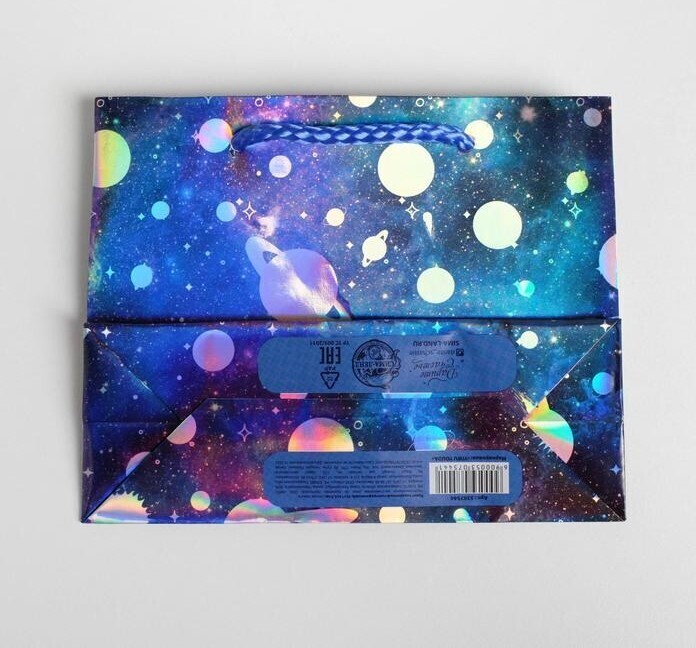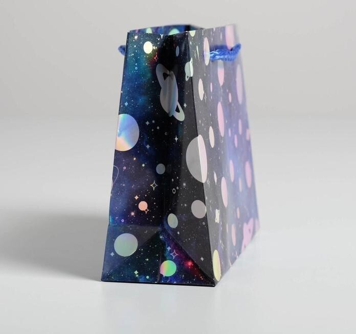 !09 Пакет подарочный (набор 3 штуки) голографический «Космос», 15 × 12 × 5,5 см.