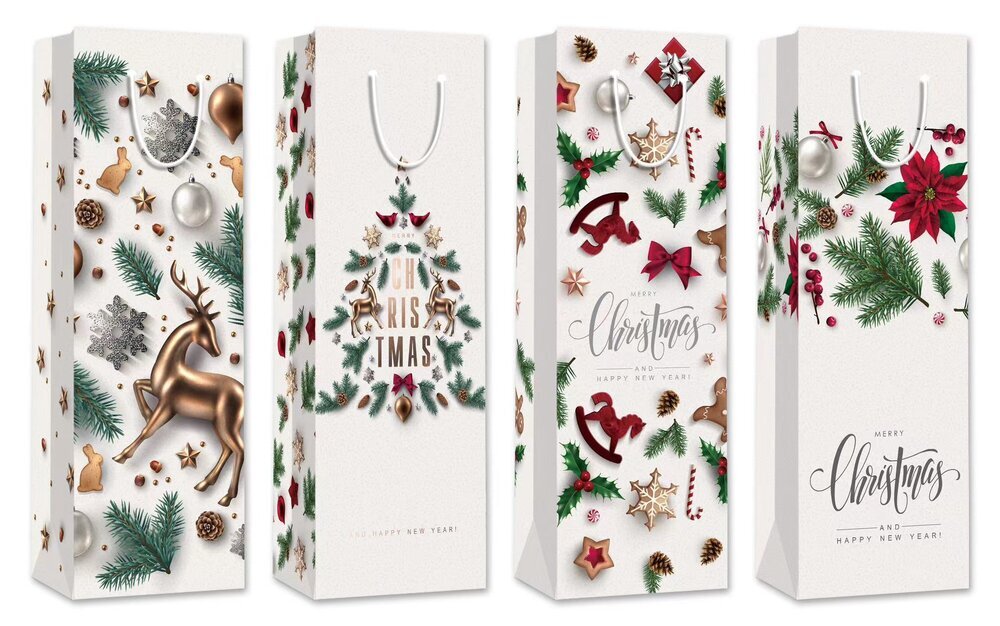 Пакет подарочный (бумага 210г/м2, блок 12шт), L12 W10 H35 см, 4в.