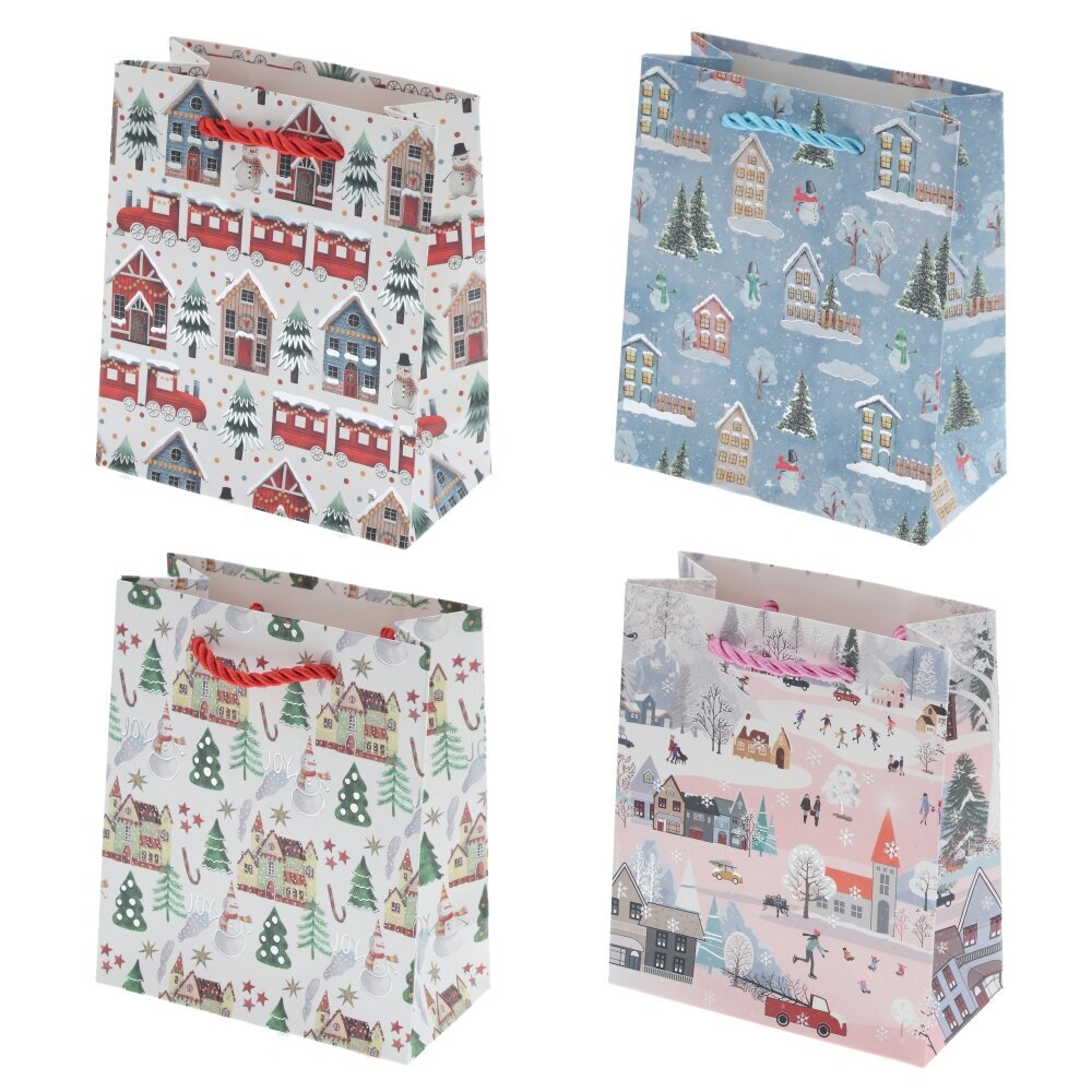 Пакет подарочный (бумага 210г/м2, блок 12шт), L12 W6 H14 см, 4в.
