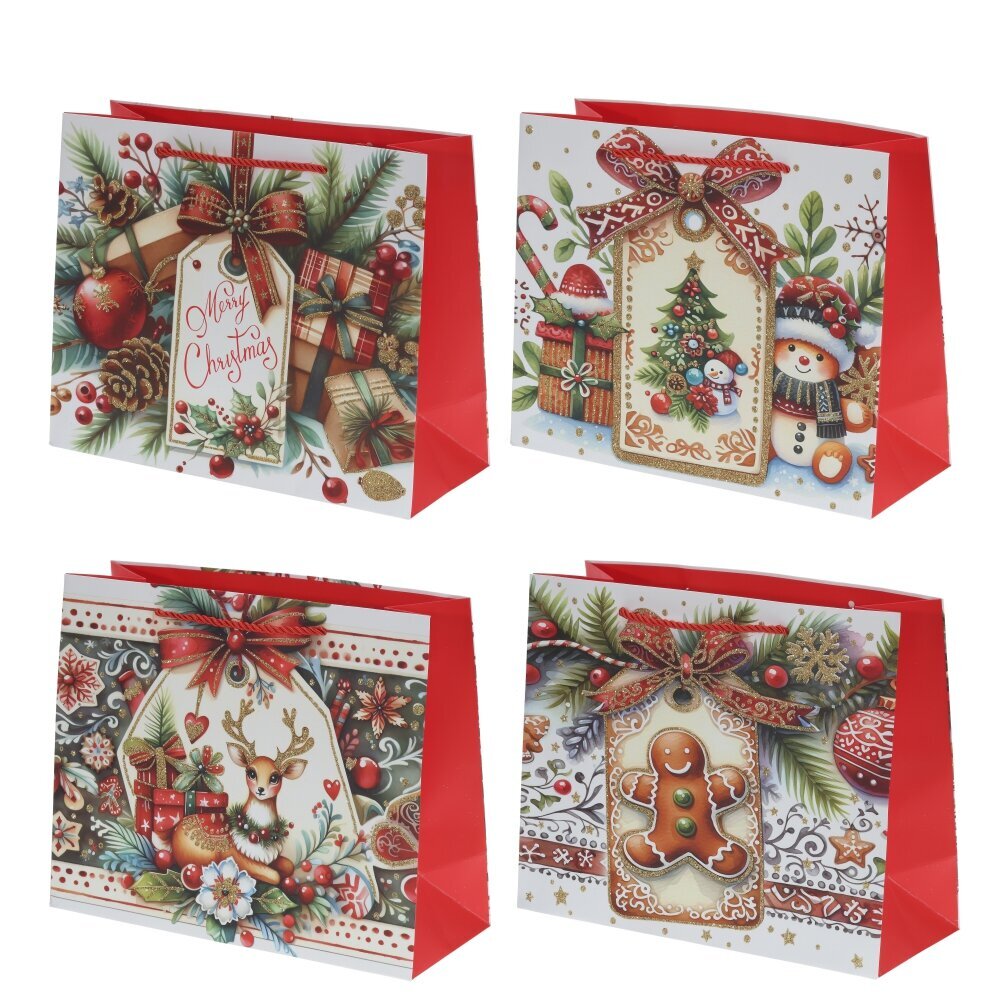 Пакет подарочный (бумага 210г/м2, блок 12шт), L18 W10 H23 см, 4в.