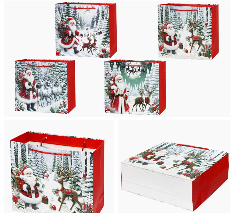 Пакет подарочный (бумага 210г/м2, блок 12шт), L30 W12 H40 см, 4в.
