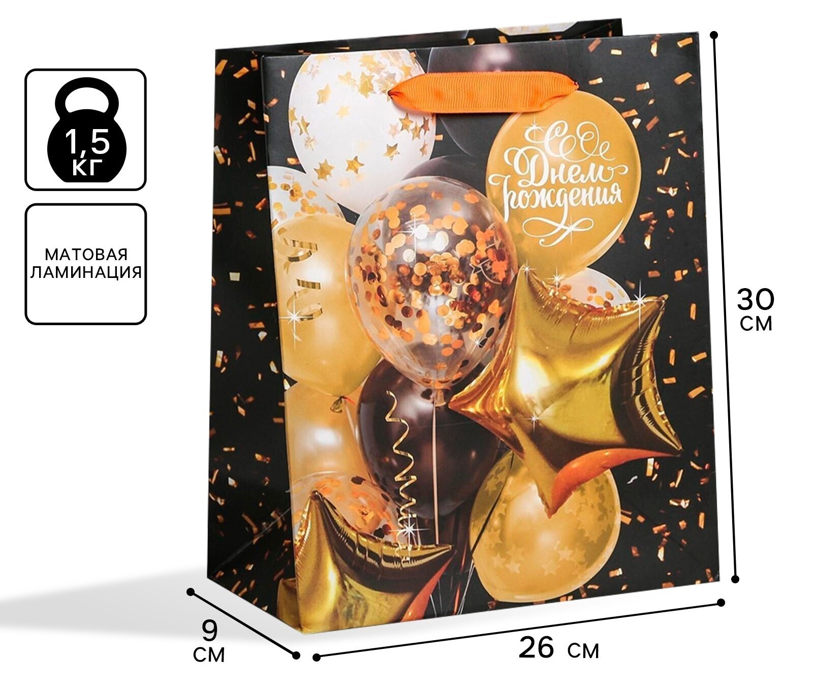 !09 Набор из 2-х подарочных ламинированных вертикальных пакетов: «С Днём Рождения» 18 х 23 х 10 см. + 26 х 30 х 9 см.