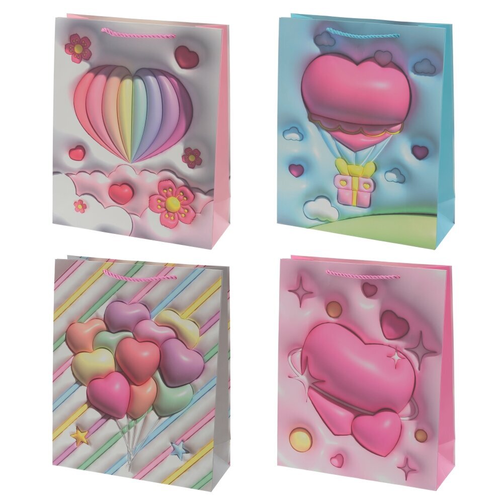 Пакет подарочный M (бумага 210г/м2, блок микс 12шт), L26 W10 H32 см, 4в.