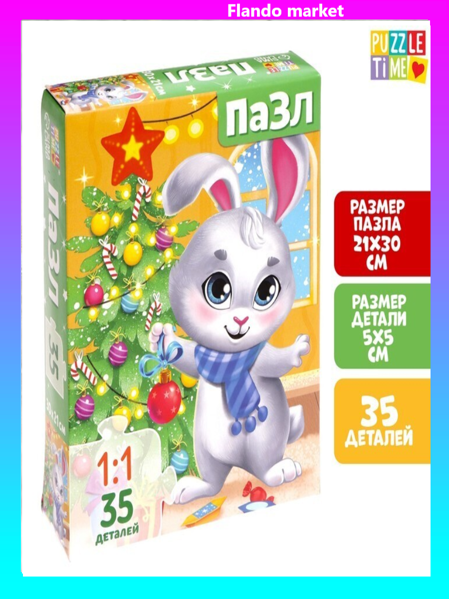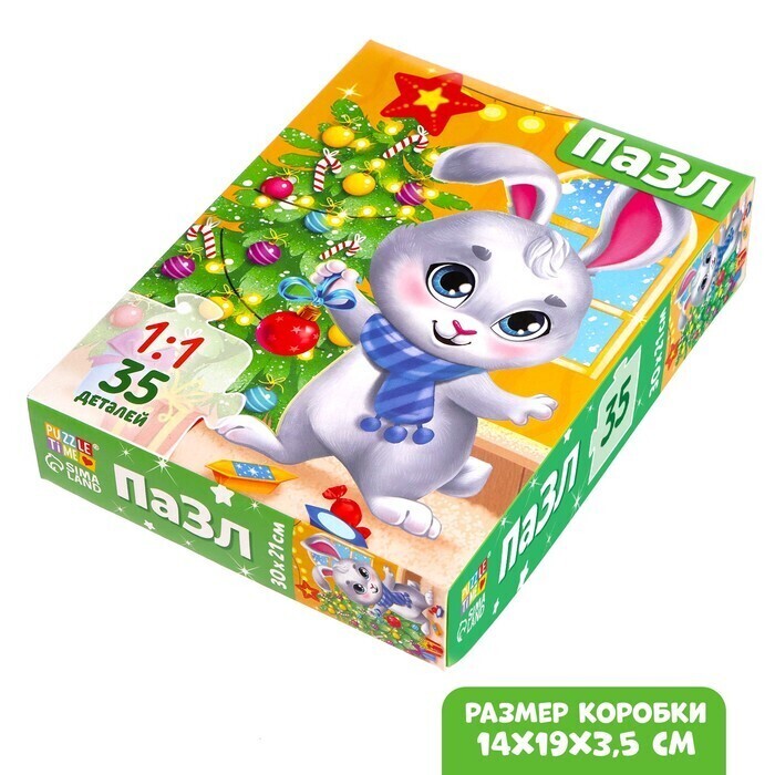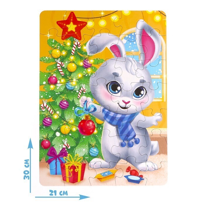 !09 Набор из 2-х пазлов - Пазл «Украшаем новогоднюю ёлочку», по 35 деталей