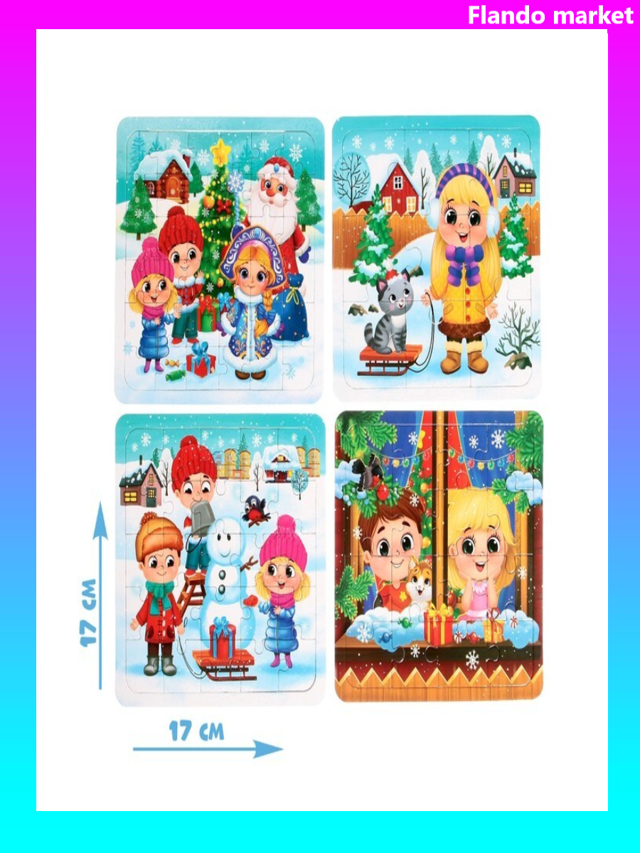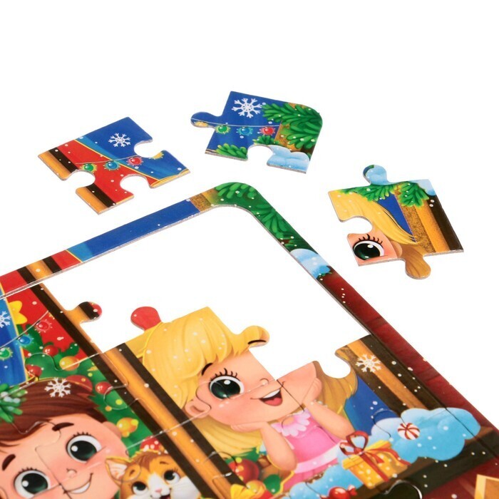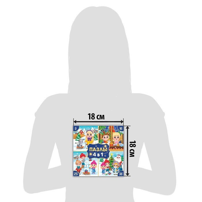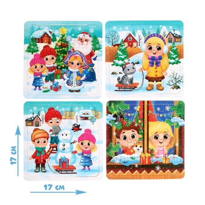 !09 Пазлы 4 в 1 «Новогодние радости», 9, 16, 25, 36 элементов