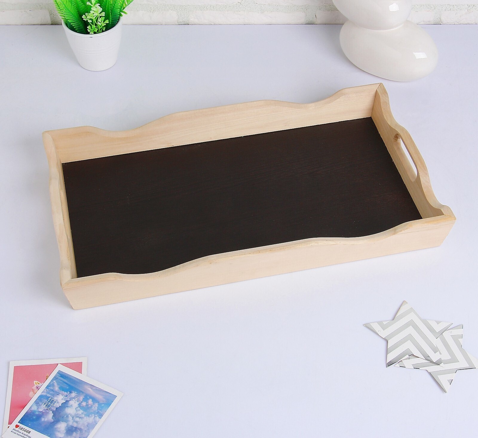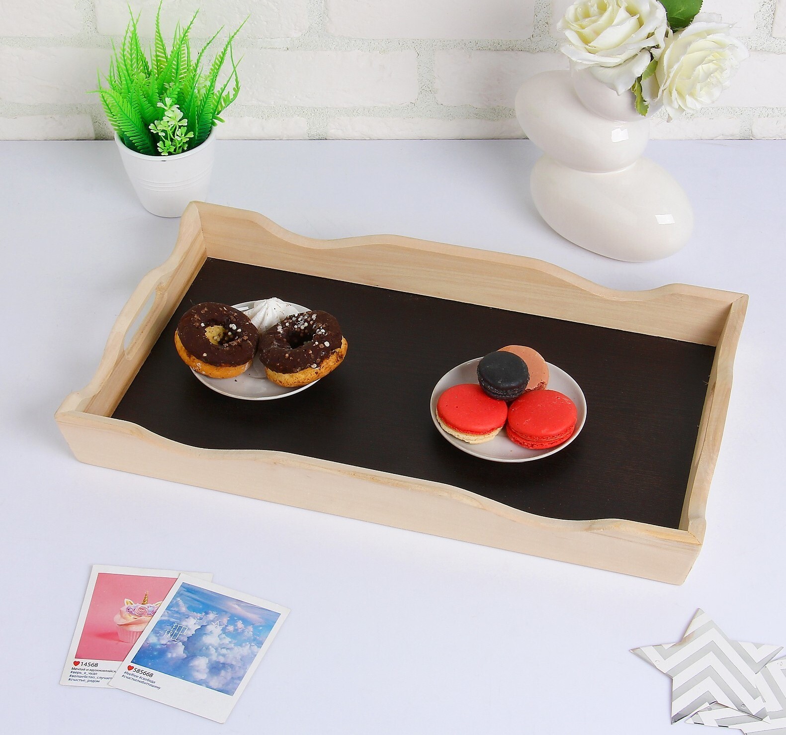 !09 Поднос деревянный фигурный для завтрака со вставкой, цвет венге, МАССИВ, 49х6х28,5см