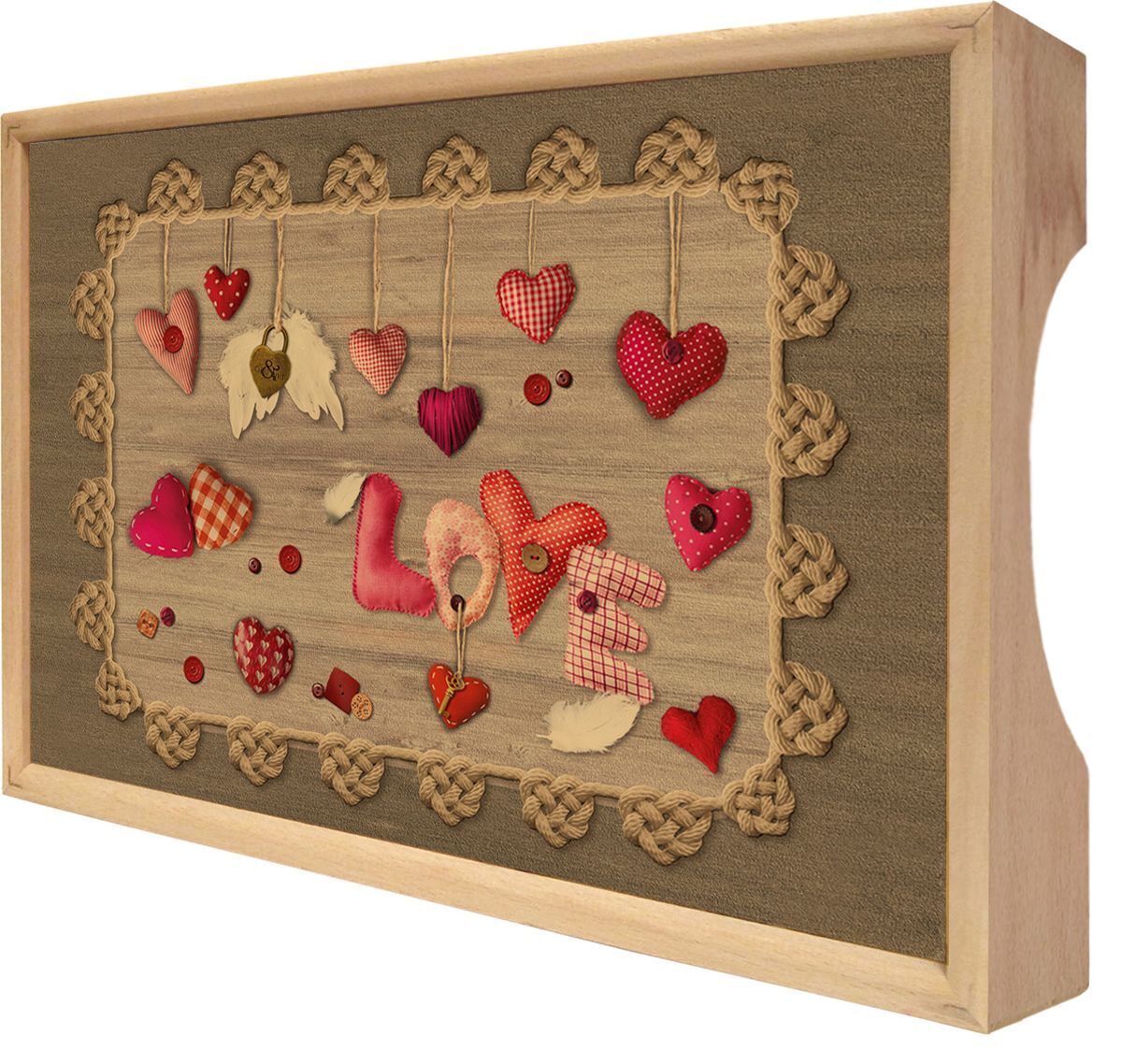 !09 Поднос "Сердечки любви", 25 х 37,5 см. Цвет бежевый, серый, розовый.