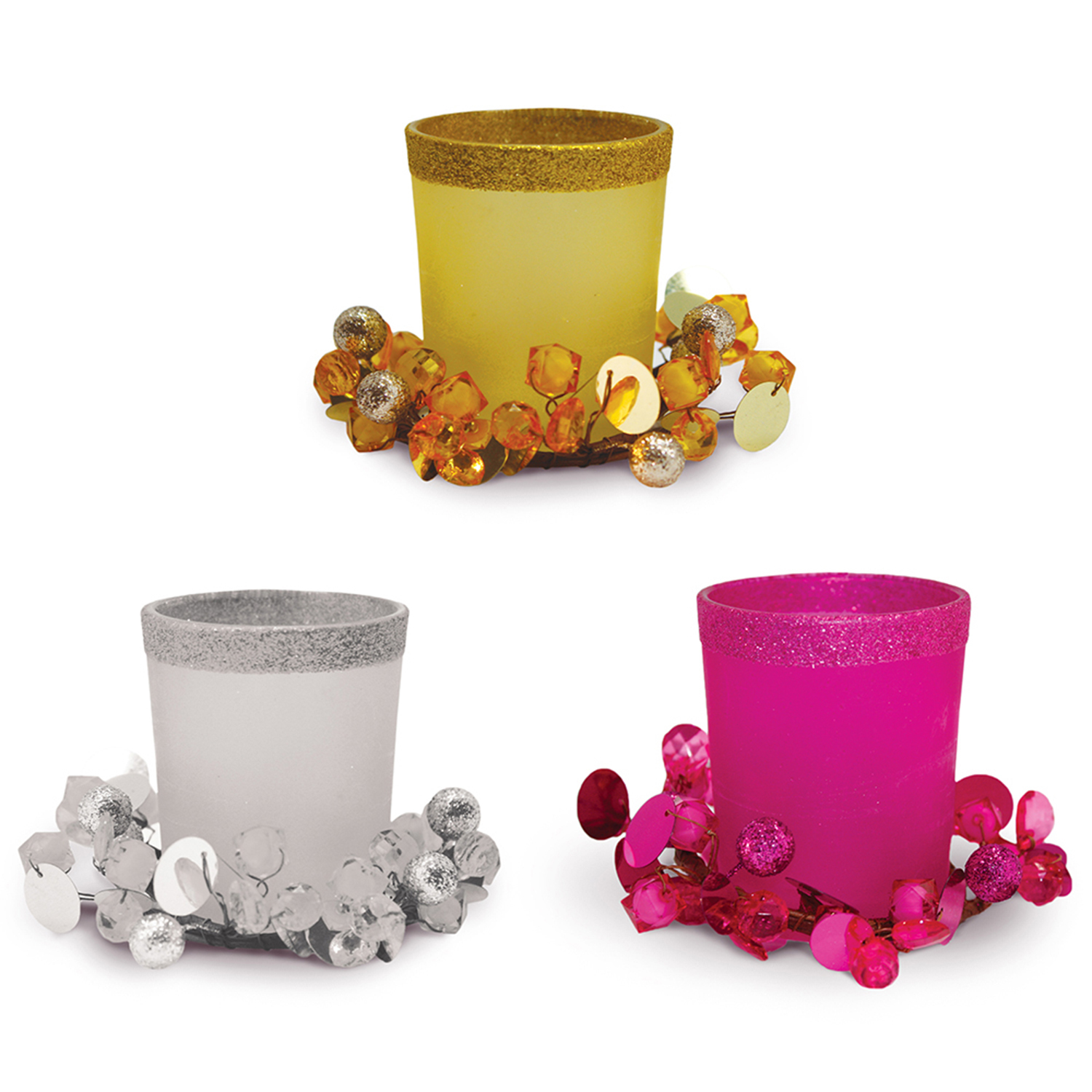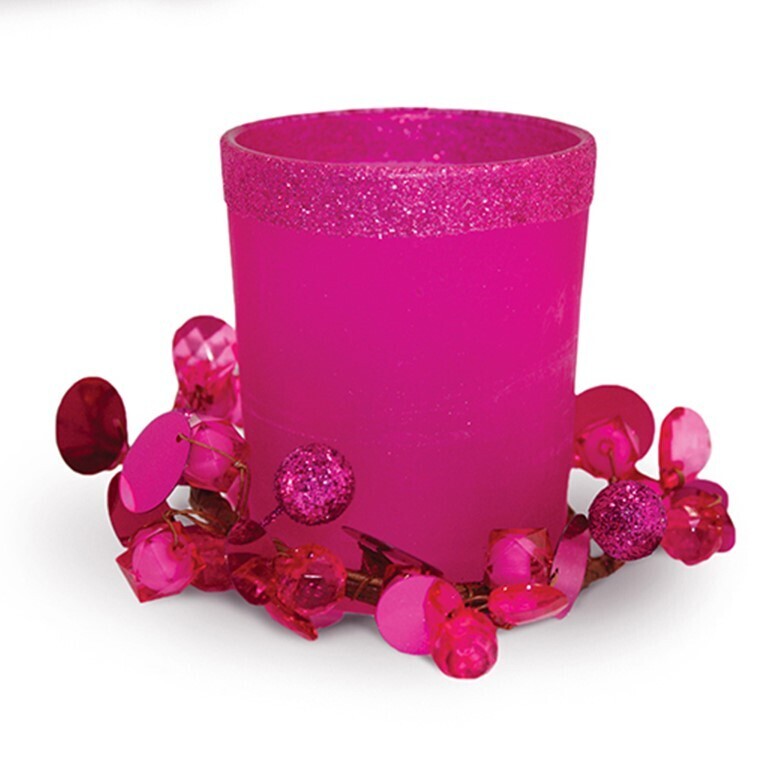 !09 Подсвечник стеклянный "B&H", с декором, высота 7 см цвет малиновый в п\у