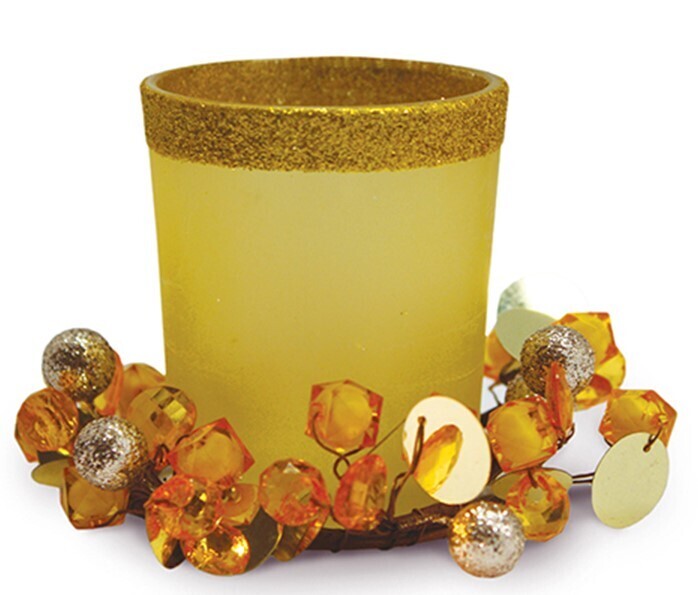 !09 Подсвечник стеклянный "B&H", с декором, высота 7 см цвет золотой в п/у
