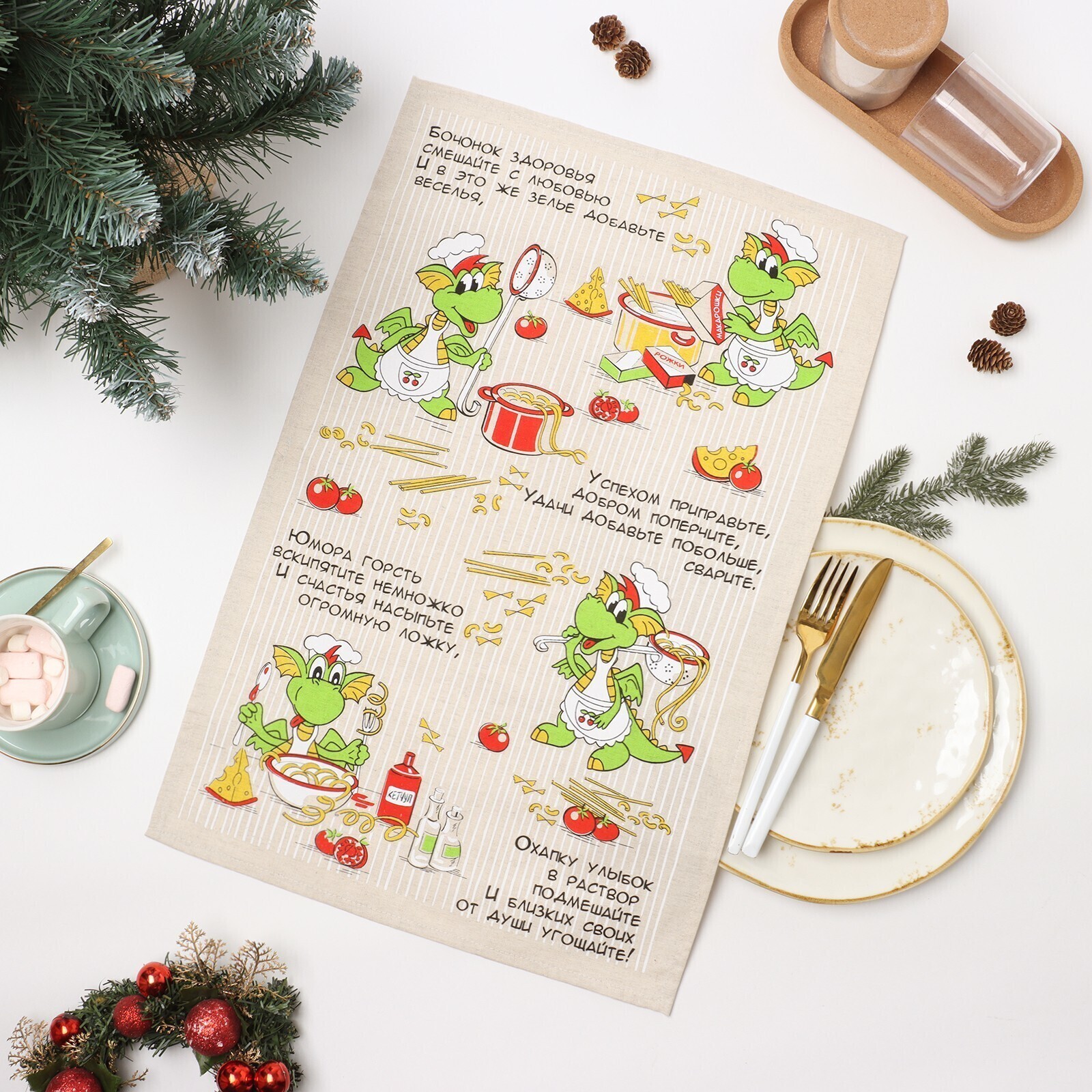 !09 Комплект из 2-х штук - Полотенце Рецепты 39х60 см, лен 50%, хлопок 50%, 160г/м