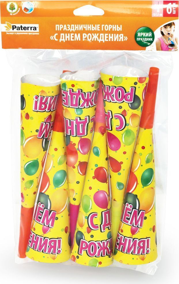 !09 Набор к Дню рождения 12 предметов: Праздничные горны 6 штук "С Днем рождения" + Праздничные колпаки "С Днем рождения" 6 штук