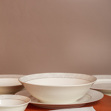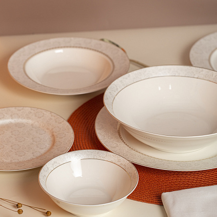 • Салатник 23 см. Салатник Fioretta Elegance 23 см выполнен из качественного прочного материала. Благодаря оригинальному принту он станет необычным украшением повседневного и праздничного стола. Изделие отличается особой звонкостью и прозрачностью, что делает его узнаваемым среди остальных. Салатник будет органично смотреться в ансамбле с другими предметами сервировки из этой же коллекции. Мыть изделие допустимо в посудомоечной машине, но, чтобы оно как можно дольше сохранило свой презентабельный вид, рекомендуется использовать ручное очищение. После - тщательно высушить посуду мягкой салфеткой или бумажным полотенцем. От использования емкости в СВЧ-печи также лучше воздержаться. Fioretta - это фарфор премиум-класса и качественная керамика.