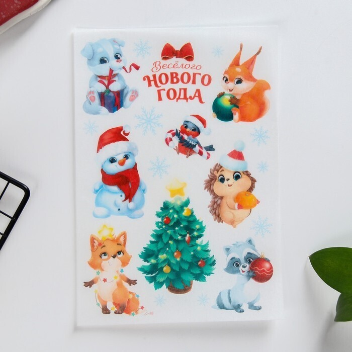 !09 Комплект из 2-х штук - Съедобные цветные картинки на вафельной бумаге «Веселого нового года», 1 лист А5