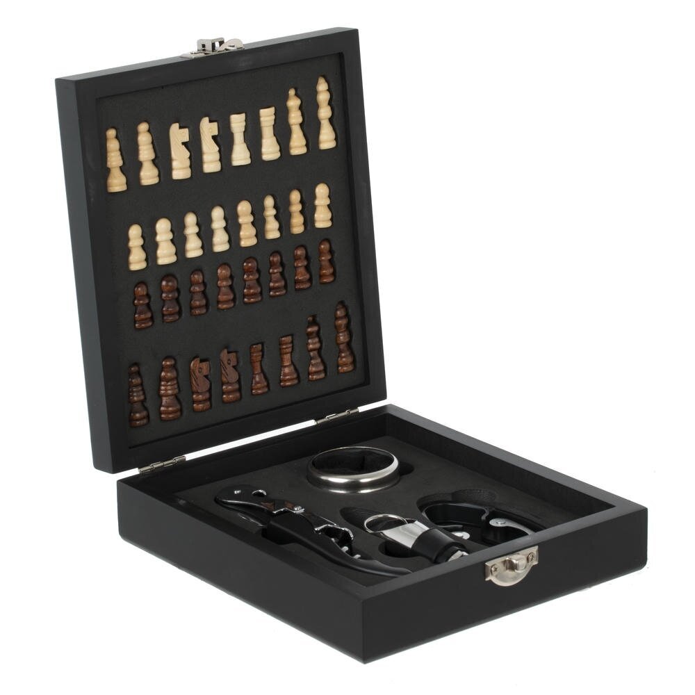 Шахматы и набор сомелье, 4 предм (штопор, пробка, кольцо, дозатор), L14,5 W17,5 H4,5 см